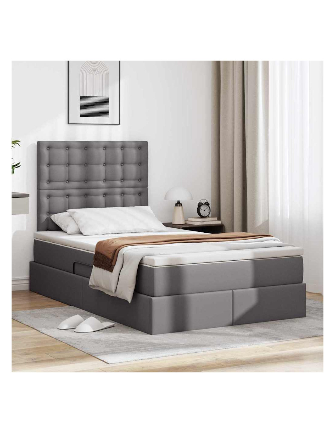 - Integrità dei materiali: Il telaio del letto è in metallo resistente, garantendo forza e stabilità per anni. La copertura in pelle sintetica di alta qualità offre un aspetto elegante e facile da mantenere. Questa combinazione non solo assicura durata, ma regala anche una finitura bellissima che arricchisce la tua camera.
