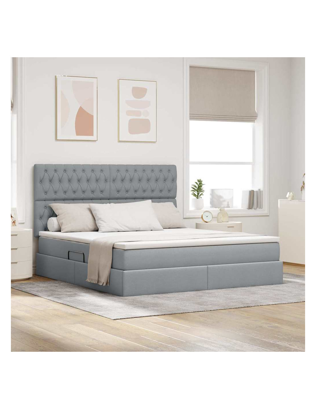 - Stoccaggio a sollevamento idraulico: Con il meccanismo di sollevamento idraulico, il letto rivela un ampio spazio di archiviazione sottostante. Questa funzione è utile per chi ha bisogno di spazio extra, permettendo un accesso facile e un'organizzazione efficace.