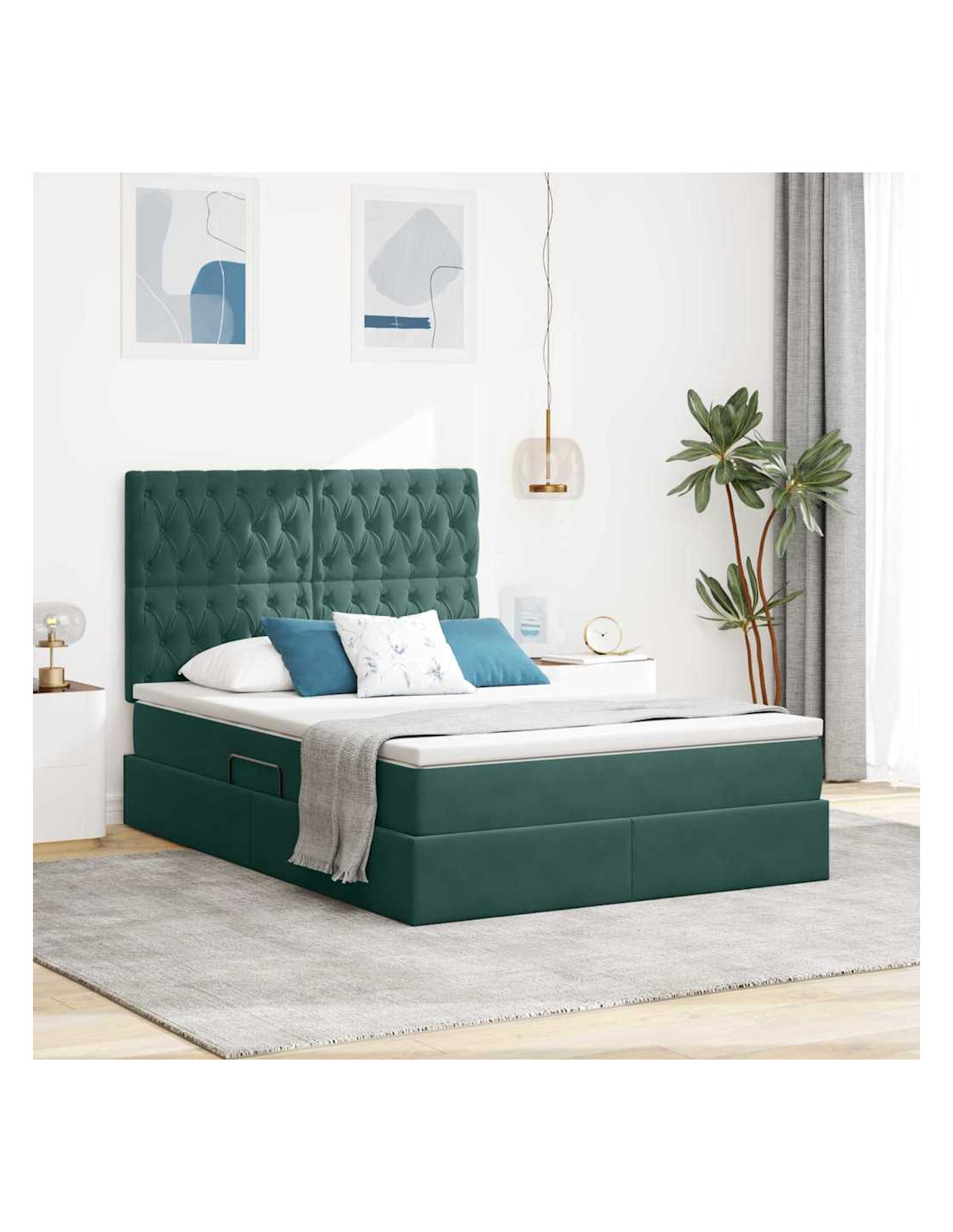 Un'aggiunta elegante ed elegante a qualsiasi camera da letto, il letto contenitore moderno con materasso combina stile e praticità per la casa di oggi. Con il velluto che trasmette lusso e il suo modo di usare lo spazio in modo intelligente, è il focus perfetto in ogni decorazione. Questo letto offre comfort e funzionalità in un pacchetto moderno, attirando chi cerca estetica e comodità nei mobili.