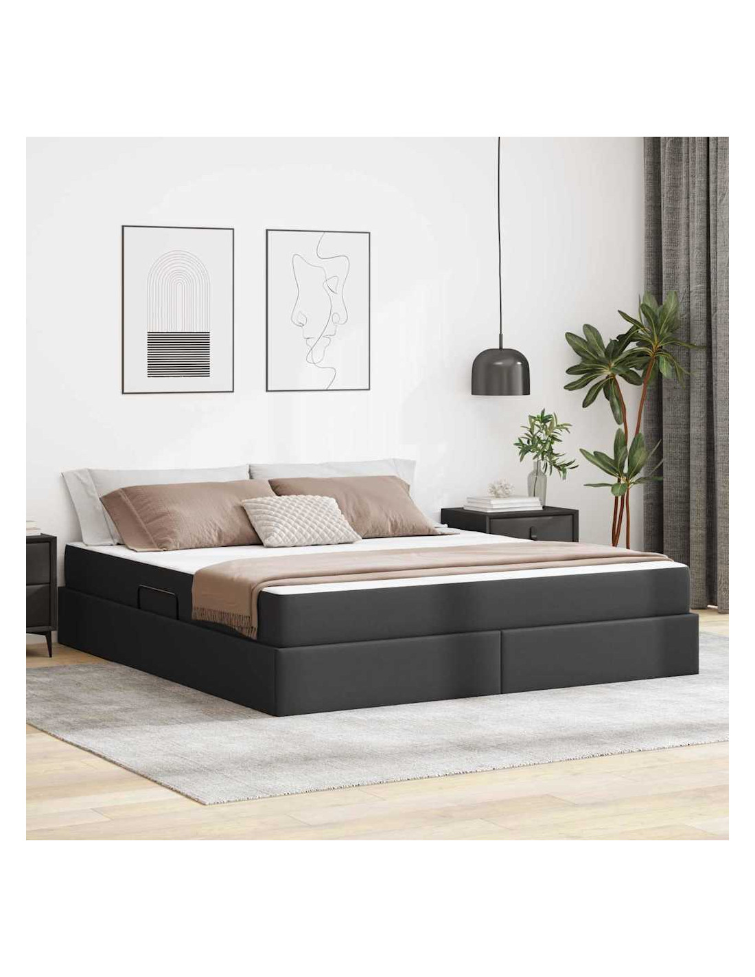 Questo letto contenitore moderno ha una struttura elegante in metallo nero ed è pensato per elevare qualsiasi camera da letto. La sua finitura liscia in pelle sintetica gli conferisce un aspetto alla moda, perfetto per chi cerca sia estetica che funzionalità. Ottimo per ottimizzare lo spazio, include un materasso con ampio stoccaggio, offrendo una soluzione perfetta per stanze con pezzi multifunzionali.