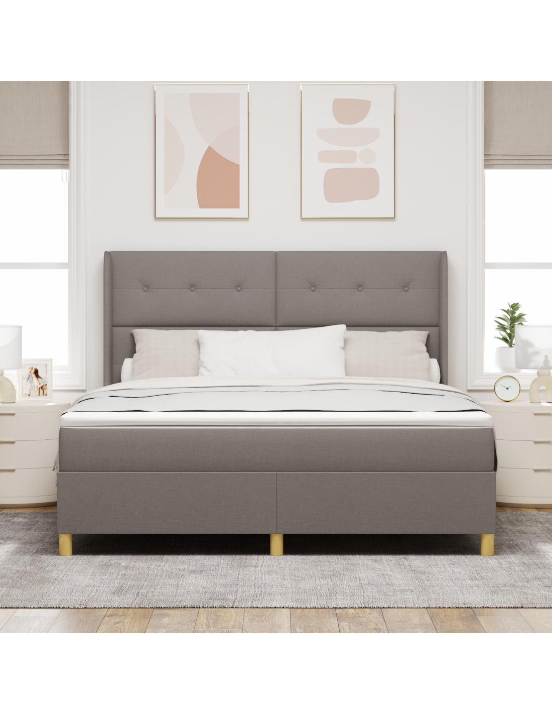 Questo Modern Box Spring Bed è perfetto per qualsiasi camera da letto. Combina comfort di lusso con un look elegante e contemporaneo. Con linee essenziali e uno stile funzionale, è progettato per dare un tocco in più al tuo spazio, assicurando anche un sonno ristoratore per tutti. La struttura a molle offre supporto e resistenza, soddisfacendo diverse abitudini di sonno grazie al suo materasso in schiuma medio-rigido.