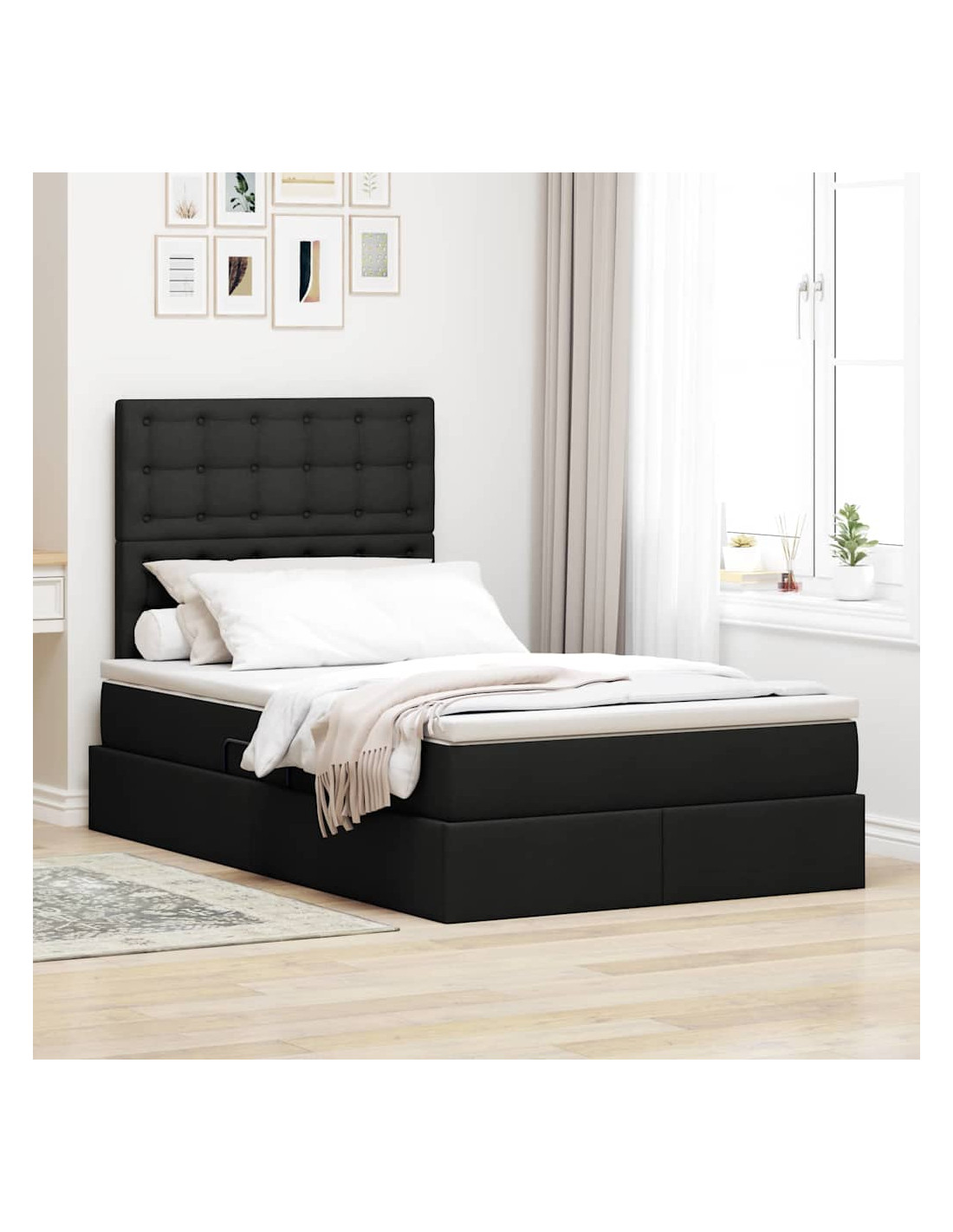 - Caratteristiche /Funzione /Design: La struttura nera elegante si integra bene con gli interni moderni. Con un’altezza di 48,5 cm, offre un accesso comodo per dormire. Il meccanismo di sollevamento laterale è un vantaggio unico rispetto ai letti tradizionali, fornendo accesso ai contenitori senza occupare spazio a terra.