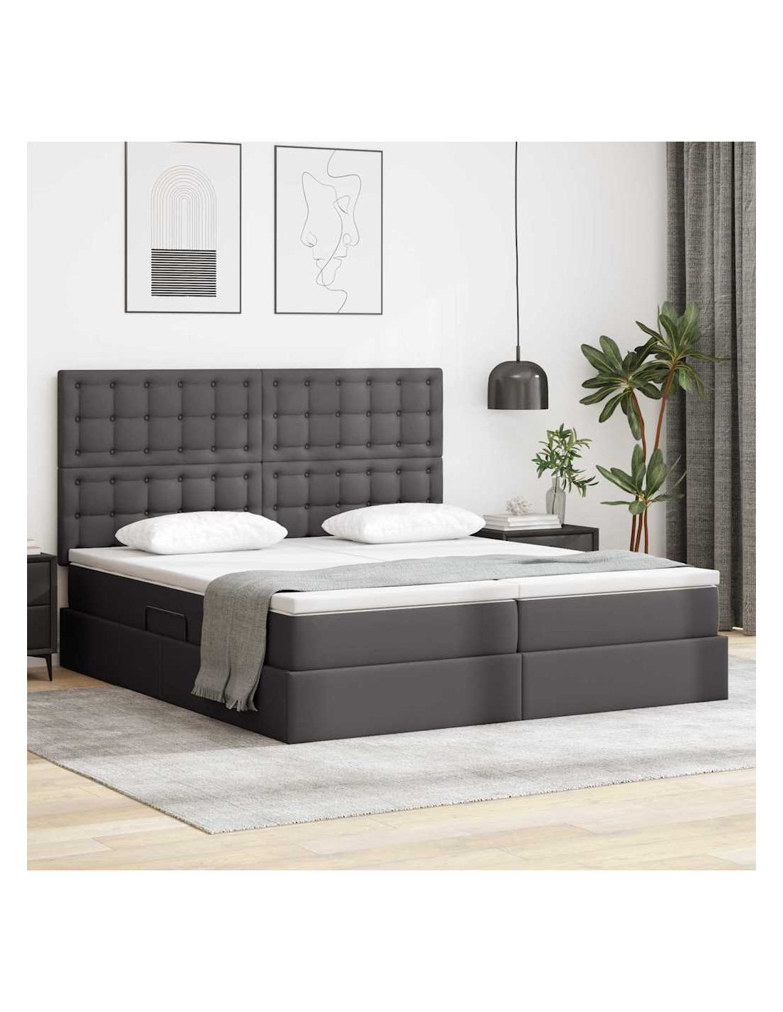 Questo letto contenitore rettangolare con materasso è un perfetto mix di estetica moderna e praticità, ideale per ogni camera da letto. Il suo design minimalista, con linee pulite e rivestimento in pelle sintetica, porta eleganza e semplicità. Oltre a essere bello, offre tanto spazio di stoccaggio sotto il letto, per tenere tutto in ordine. È perfetto per chiunque, da chi vive da solo a famiglie, grazie alla sua fusione di stile e funzionalità.