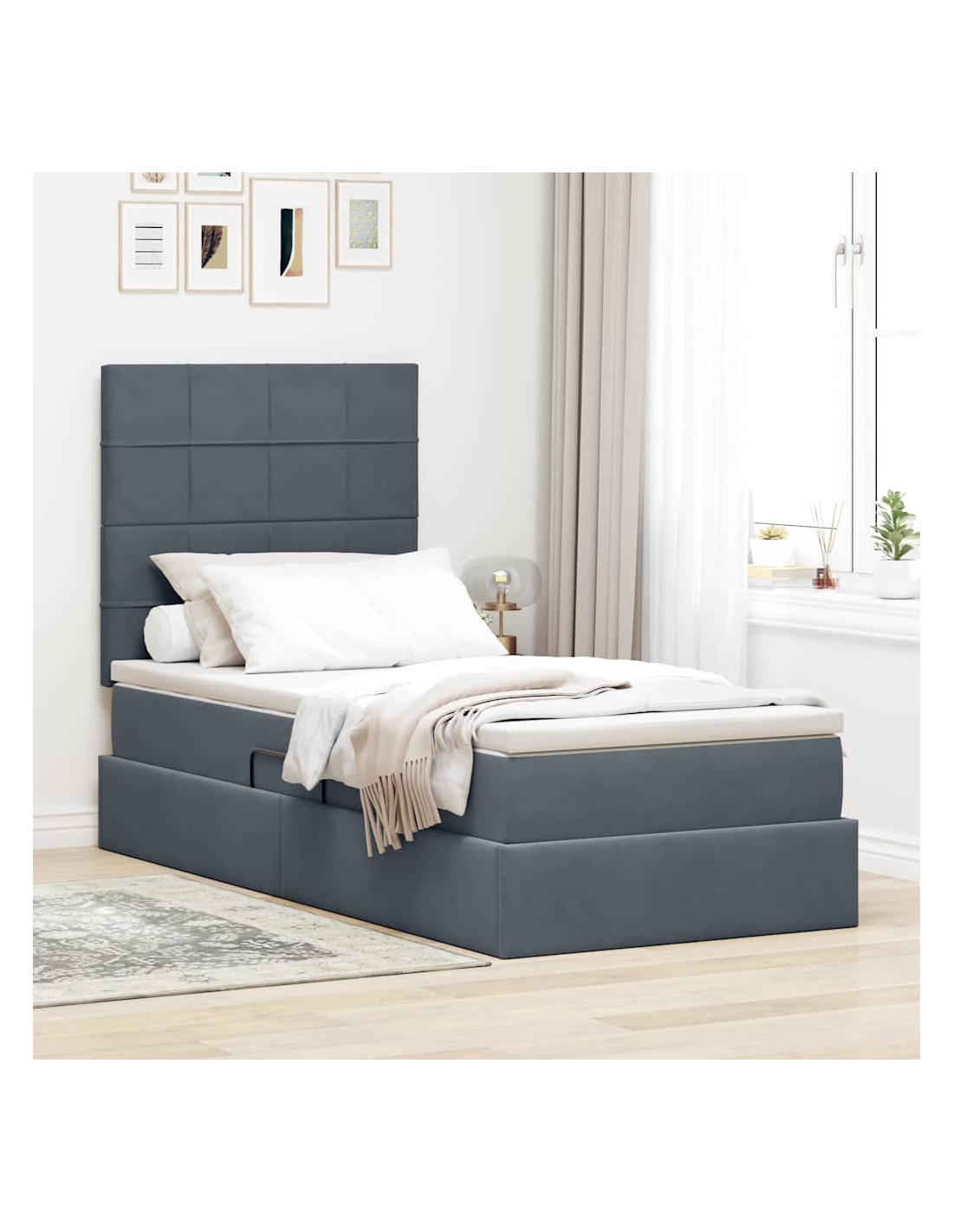 Un'aggiunta elegante ed elegante a qualsiasi camera da letto, il letto contenitore moderno con materasso combina stile e praticità per la casa di oggi. Con il velluto che trasmette lusso e il suo modo di usare lo spazio in modo intelligente, è il focus perfetto in ogni decorazione. Questo letto offre comfort e funzionalità in un pacchetto moderno, attirando chi cerca estetica e comodità nei mobili.