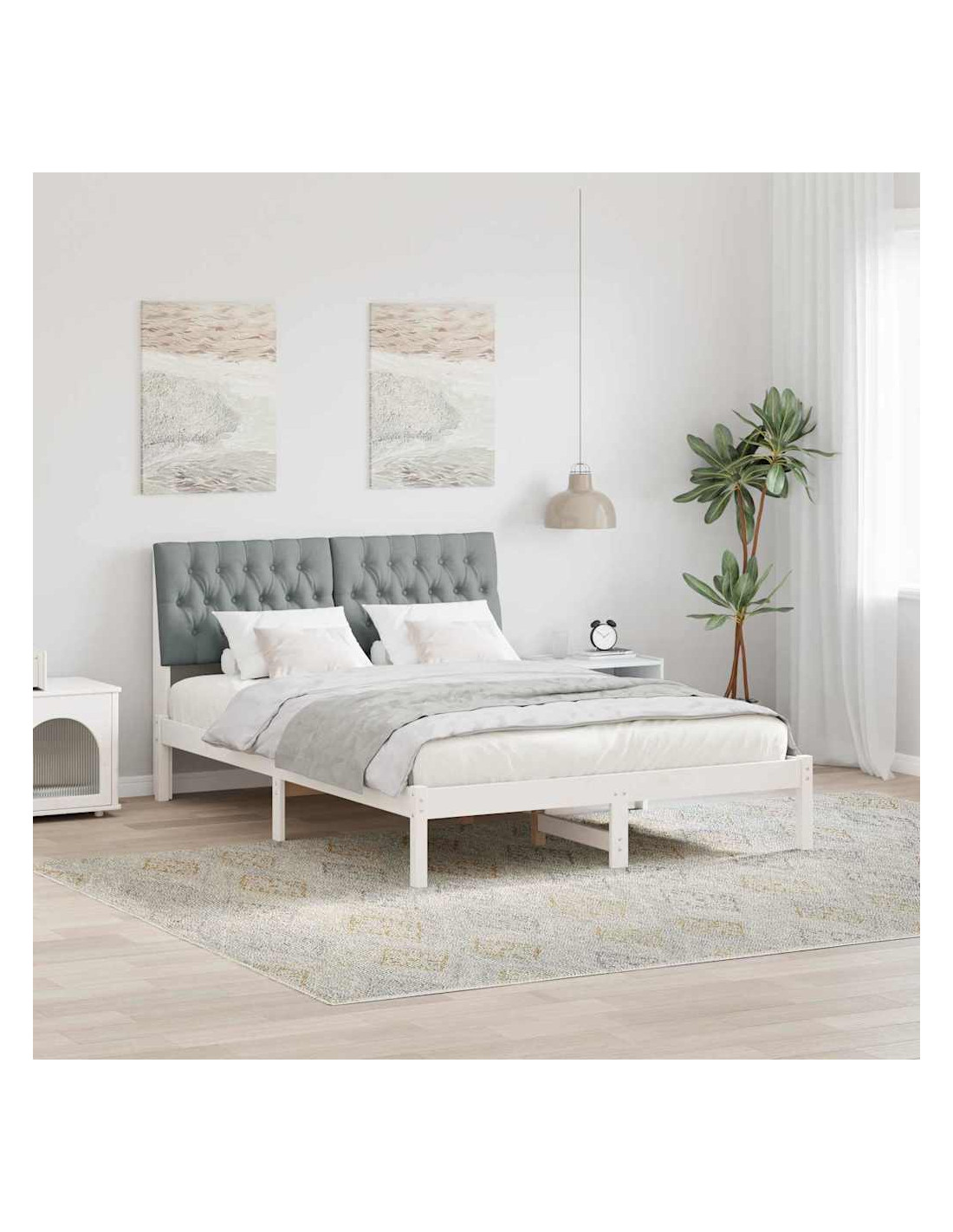 - Durabilità e Funzione: Usando materiali come truciolare e legno massello di pino, la struttura è pensata per durare, mantenendo un aspetto chic. Il design semplice rende facile abbinare vari stili di decorazione della camera da letto.