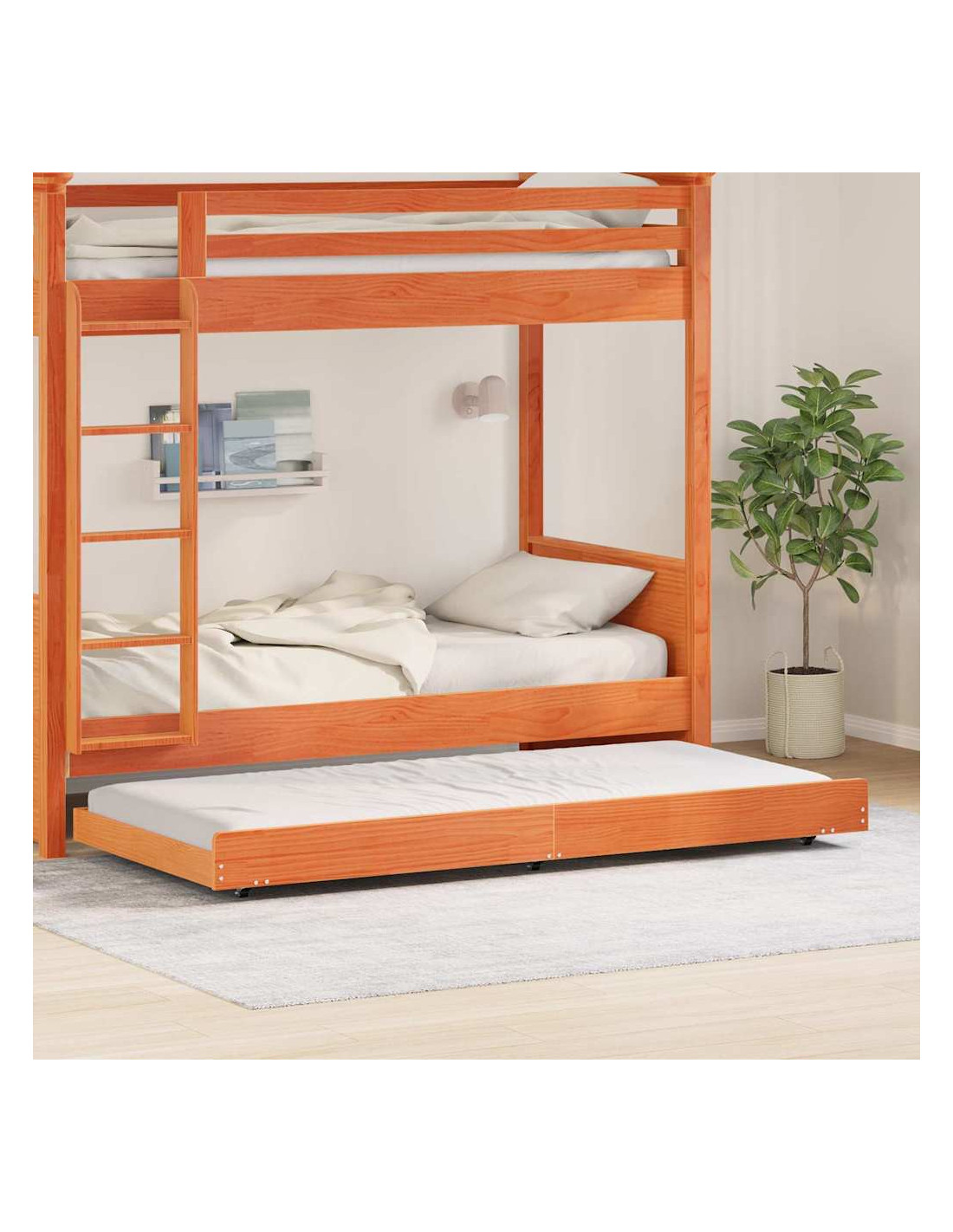 - Costruzione solida: Fatto in legno massello di pino, il letto è robusto e durevole. Questo materiale fa sì che il letto resista all'uso quotidiano senza perdere la sua struttura o fascino. Le venature naturali del legno di pino danno anche un tocco visivo ricco alla stanza, creando un'atmosfera calda e accogliente.