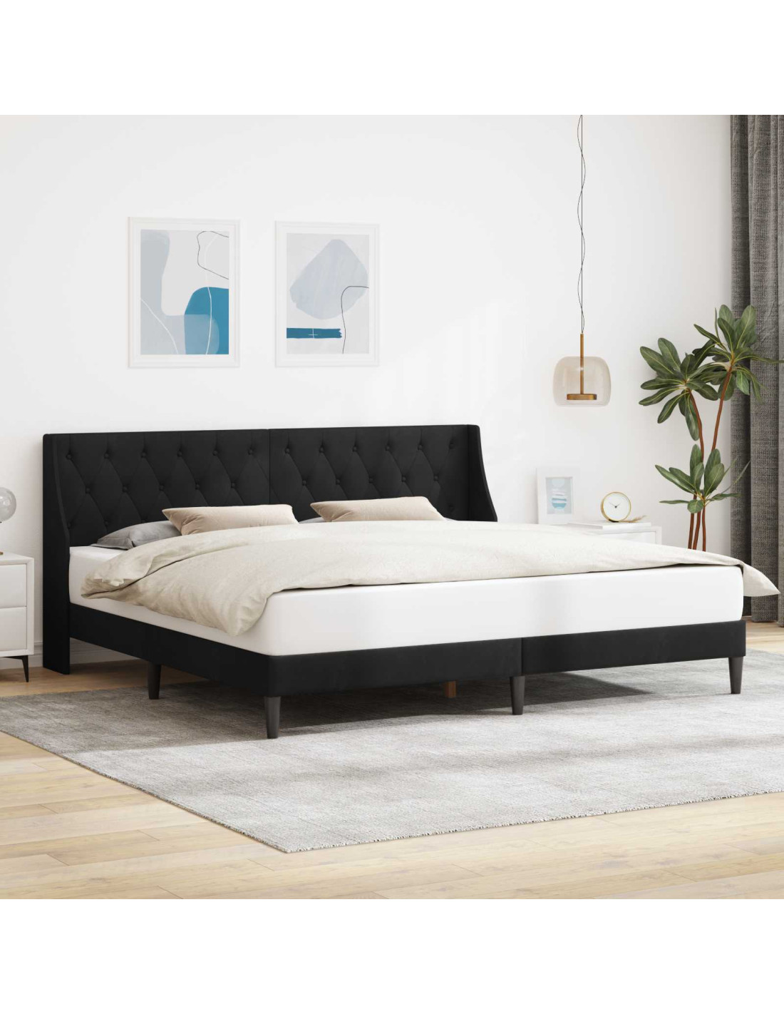 - Materiali: Questo letto ha una finitura in velluto lussuoso che offre un'eleganza palpabile, ideale per chi cerca un'estetica di alta qualità. Il velluto è noto per la sua durevolezza e comfort, il che lo rende perfetto come punto focale in camera da letto. Abbinato a una solida base in compensato, garantisce stabilità per un uso quotidiano.