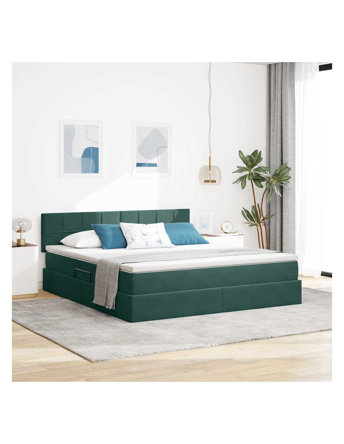 Il Letto Moderno con Contenitore unisce design e funzionalità in modo elegante, rendendolo l'aggiunta perfetta per qualsiasi camera da letto contemporanea. Il suo rivestimento in velluto e le linee semplici esprimono classe e semplicità, adattandosi perfettamente a qualsiasi arredamento moderno, offrendo anche un sacco di spazio per riporre sotto il materasso. Se cerchi un ambiente ordinato e raffinato, il meccanismo di sollevamento idraulico ti darà facile accesso a un bel po'di spazio in cui sistemare coperte, biancheria o qualsiasi altra cosa, per ottimizzare al meglio la tua camera.