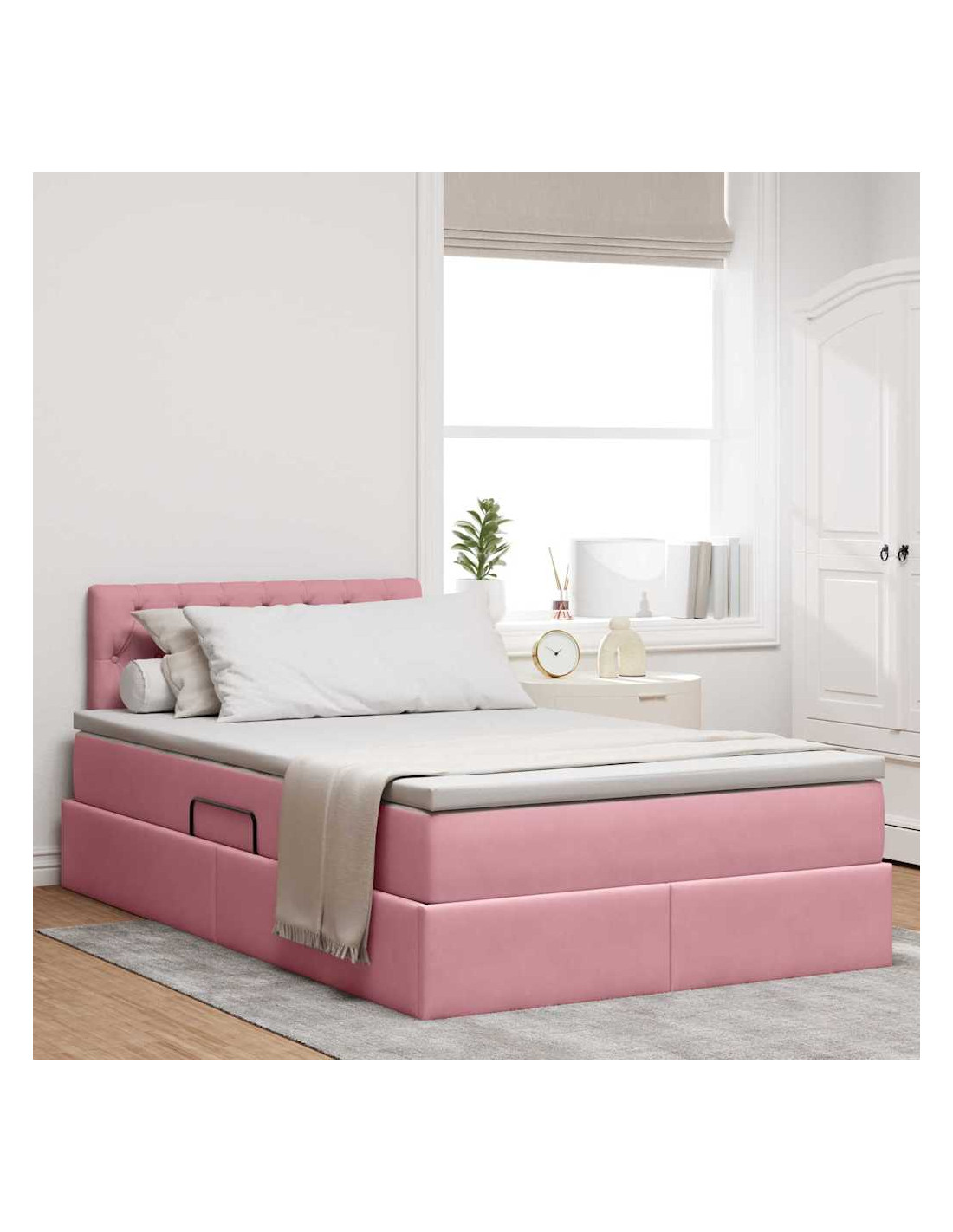 Il Letto Moderno con Contenitore unisce design e funzionalità in modo elegante, rendendolo l'aggiunta perfetta per qualsiasi camera da letto contemporanea. Il suo rivestimento in velluto e le linee semplici esprimono classe e semplicità, adattandosi perfettamente a qualsiasi arredamento moderno, offrendo anche un sacco di spazio per riporre sotto il materasso. Se cerchi un ambiente ordinato e raffinato, il meccanismo di sollevamento idraulico ti darà facile accesso a un bel po'di spazio in cui sistemare coperte, biancheria o qualsiasi altra cosa, per ottimizzare al meglio la tua camera.