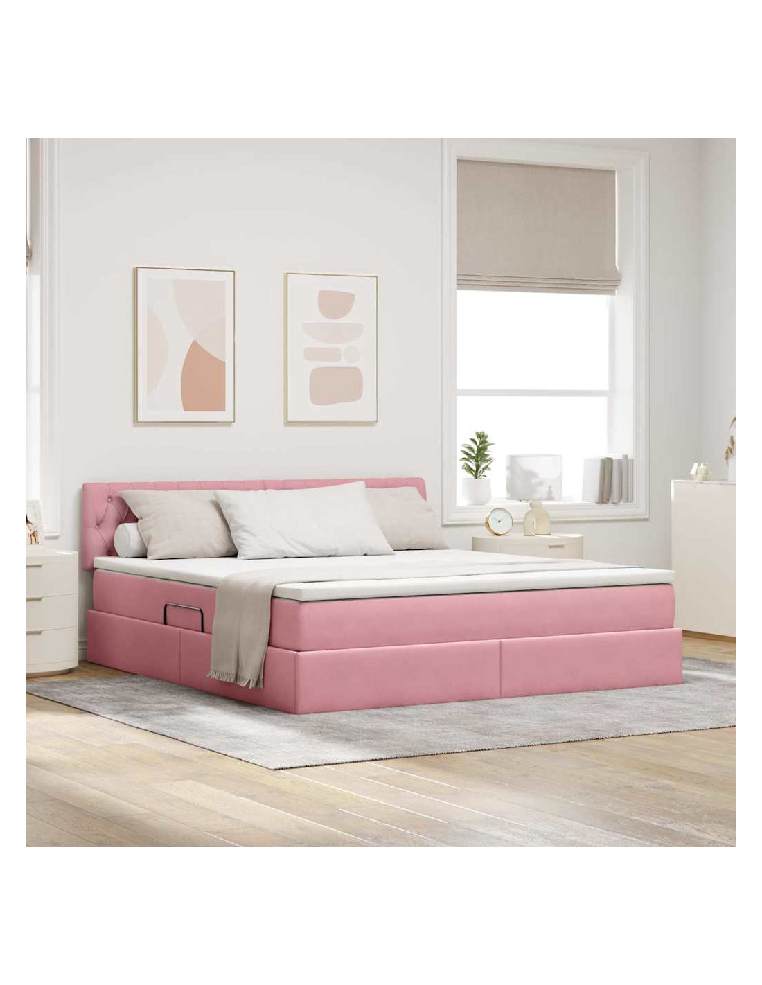 Il Letto Moderno con Contenitore unisce design e funzionalità in modo elegante, rendendolo l'aggiunta perfetta per qualsiasi camera da letto contemporanea. Il suo rivestimento in velluto e le linee semplici esprimono classe e semplicità, adattandosi perfettamente a qualsiasi arredamento moderno, offrendo anche un sacco di spazio per riporre sotto il materasso. Se cerchi un ambiente ordinato e raffinato, il meccanismo di sollevamento idraulico ti darà facile accesso a un bel po'di spazio in cui sistemare coperte, biancheria o qualsiasi altra cosa, per ottimizzare al meglio la tua camera.