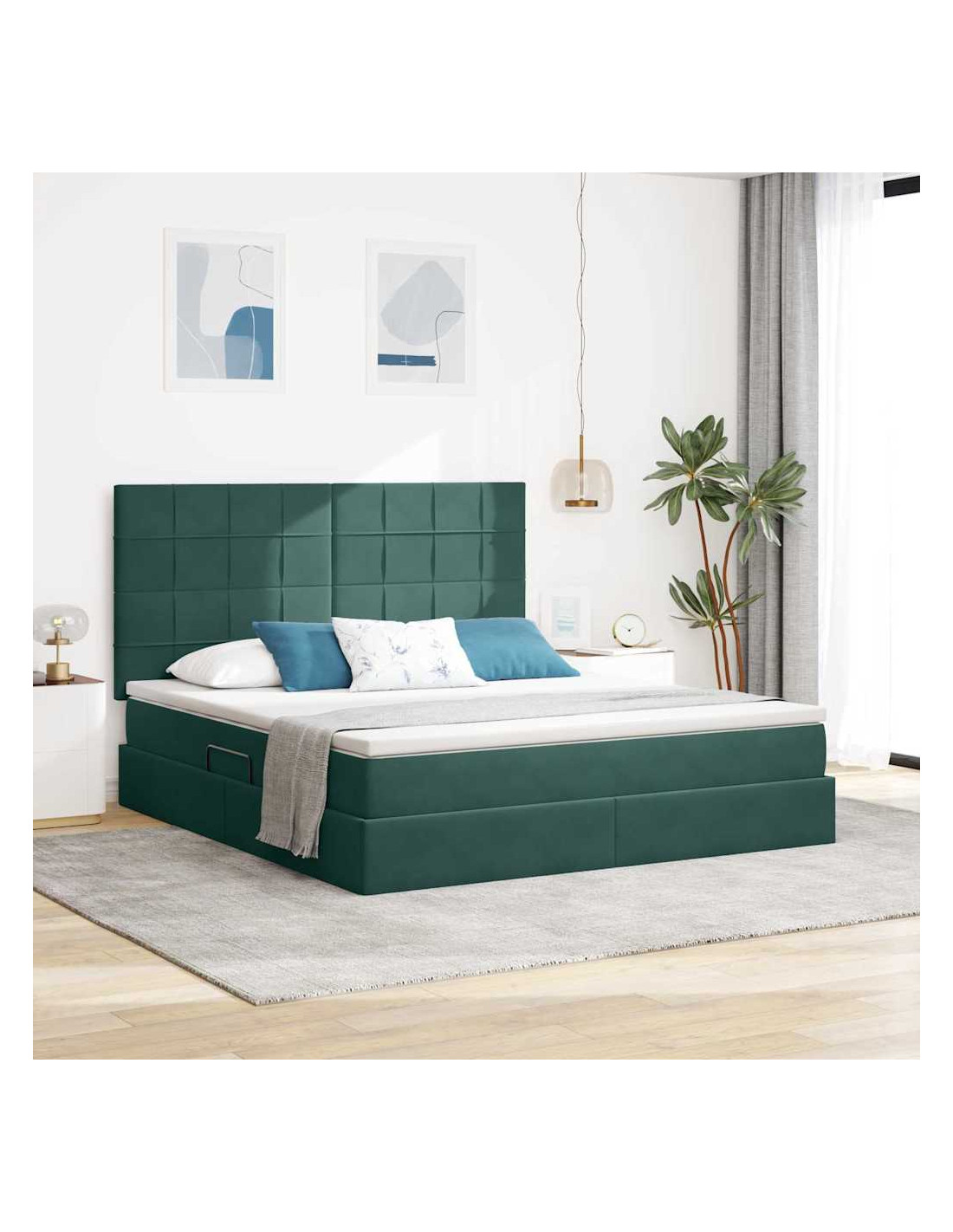 Un'aggiunta elegante ed elegante a qualsiasi camera da letto, il letto contenitore moderno con materasso combina stile e praticità per la casa di oggi. Con il velluto che trasmette lusso e il suo modo di usare lo spazio in modo intelligente, è il focus perfetto in ogni decorazione. Questo letto offre comfort e funzionalità in un pacchetto moderno, attirando chi cerca estetica e comodità nei mobili.
