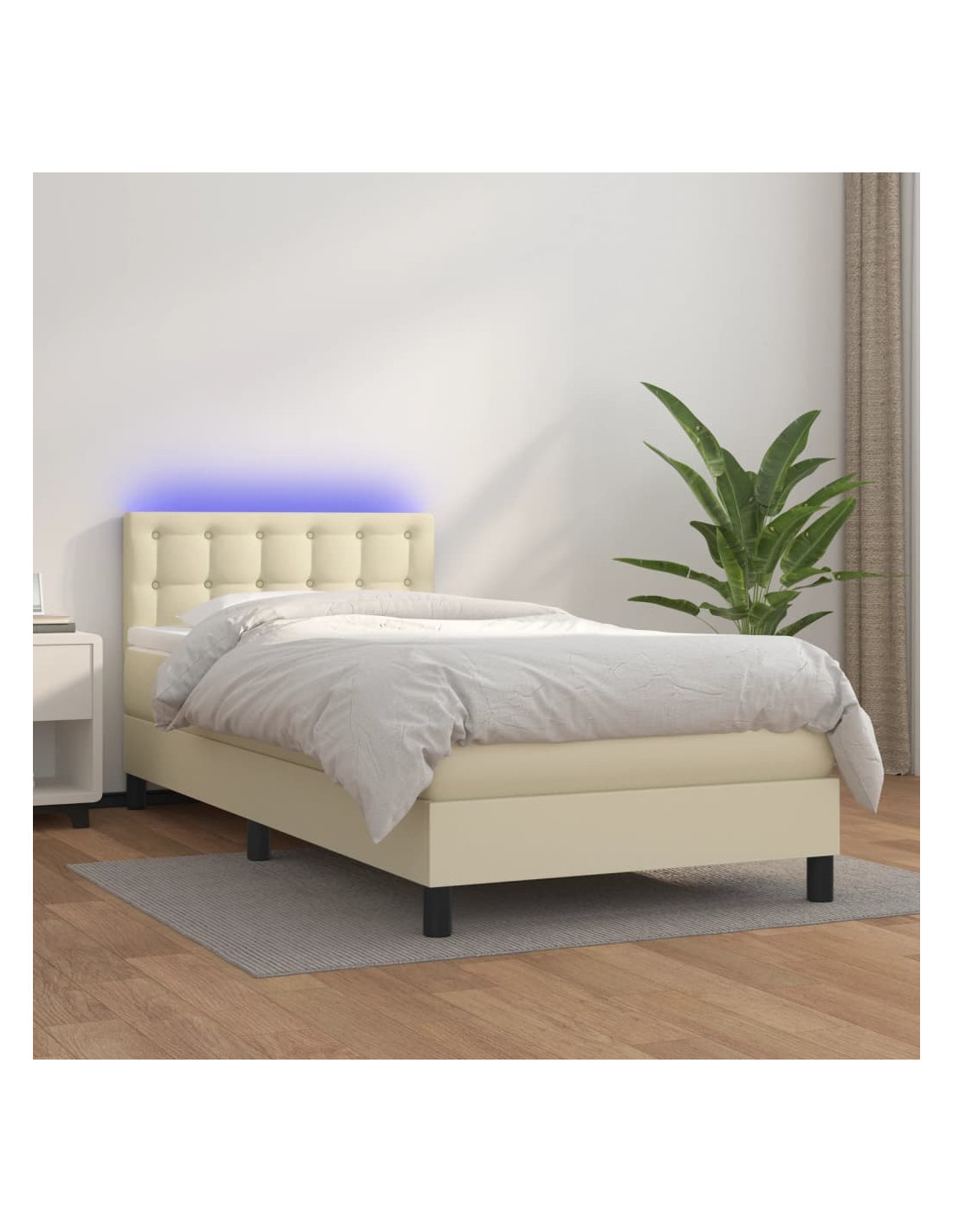 Giroletto a Molle con Materasso e LED Crema 80x200cm Similpelle