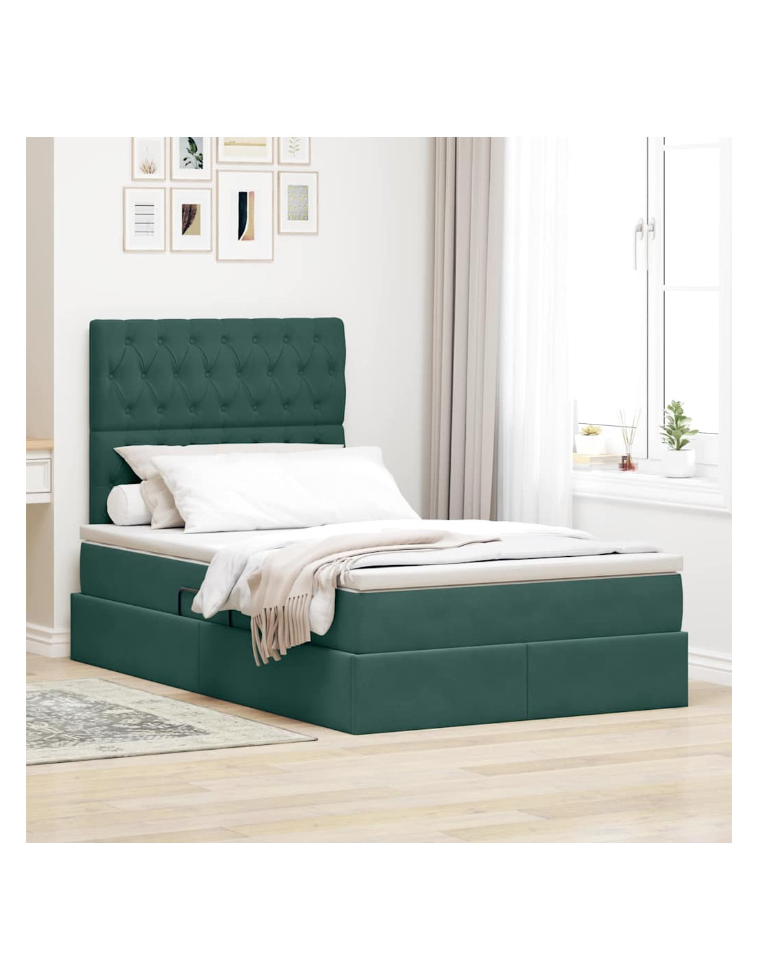 Un'aggiunta elegante ed elegante a qualsiasi camera da letto, il letto contenitore moderno con materasso combina stile e praticità per la casa di oggi. Con il velluto che trasmette lusso e il suo modo di usare lo spazio in modo intelligente, è il focus perfetto in ogni decorazione. Questo letto offre comfort e funzionalità in un pacchetto moderno, attirando chi cerca estetica e comodità nei mobili.