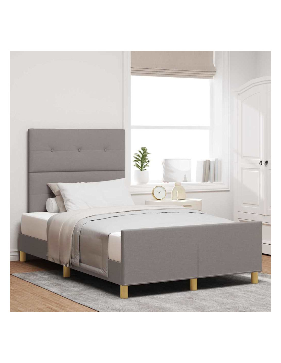 Questo letto a piattaforma colpisce per il suo design semplice e costruzione robusta che elimina il bisogno di un box spring. Il rivestimento in tessuto offre un tocco caldo e rende questo pezzo adorabile per qualsiasi camera da letto. È tutto all'insegna della semplicità, creando un'atmosfera moderna e offrendo una soluzione comoda per dormire che migliora lo stile della tua stanza con le sue linee eleganti. Rivestimento in Tessuto: Rivestito in un tessuto morbido e accogliente, questo letto è elegante e confortevole. Il tessuto è piacevole al tatto e contribuisce a creare un'atmosfera serena nella tua camera, ed è anche molto resistente, mantenendo il suo aspetto nel tempo. Riempimento in Schiuma: Al centro di questo letto c'è un'imbottitura in schiuma leggera che offre comodità e isolamento. Questo supporta il materasso e aiuta a ridurre i rumori per garantire un sonno tranquillo. La schiuma resta elastica, assicurandoti un buon comfort. Design Minimalista: Seguendo il concetto 'less is more', questo letto salta i fronzoli per focalizzarsi su linee pulite e semplicità. Si integra bene in qualsiasi decorazione della camera, dal moderno al classico. Lo stile pulito valorizza la biancheria e la decorazione in un ambiente rilassato. Componenti Inclusi: Il letto arriva con una testiera e un piedino, aumentando la stabilità e il look complessivo. Questi elementi migliorano la solidità e rendono l'assemblaggio facile, così chiunque può partecipare. Cura e Manutenzione: Per mantenere il tessuto e la struttura del letto in ottime condizioni, basta pulirli con un panno umido ogni tanto e evitare agenti chimici aggressivi. Seguire questa semplice routine garantirà una lunga durata, mantenendo il tuo spazio per dormire fresco e accogliente.