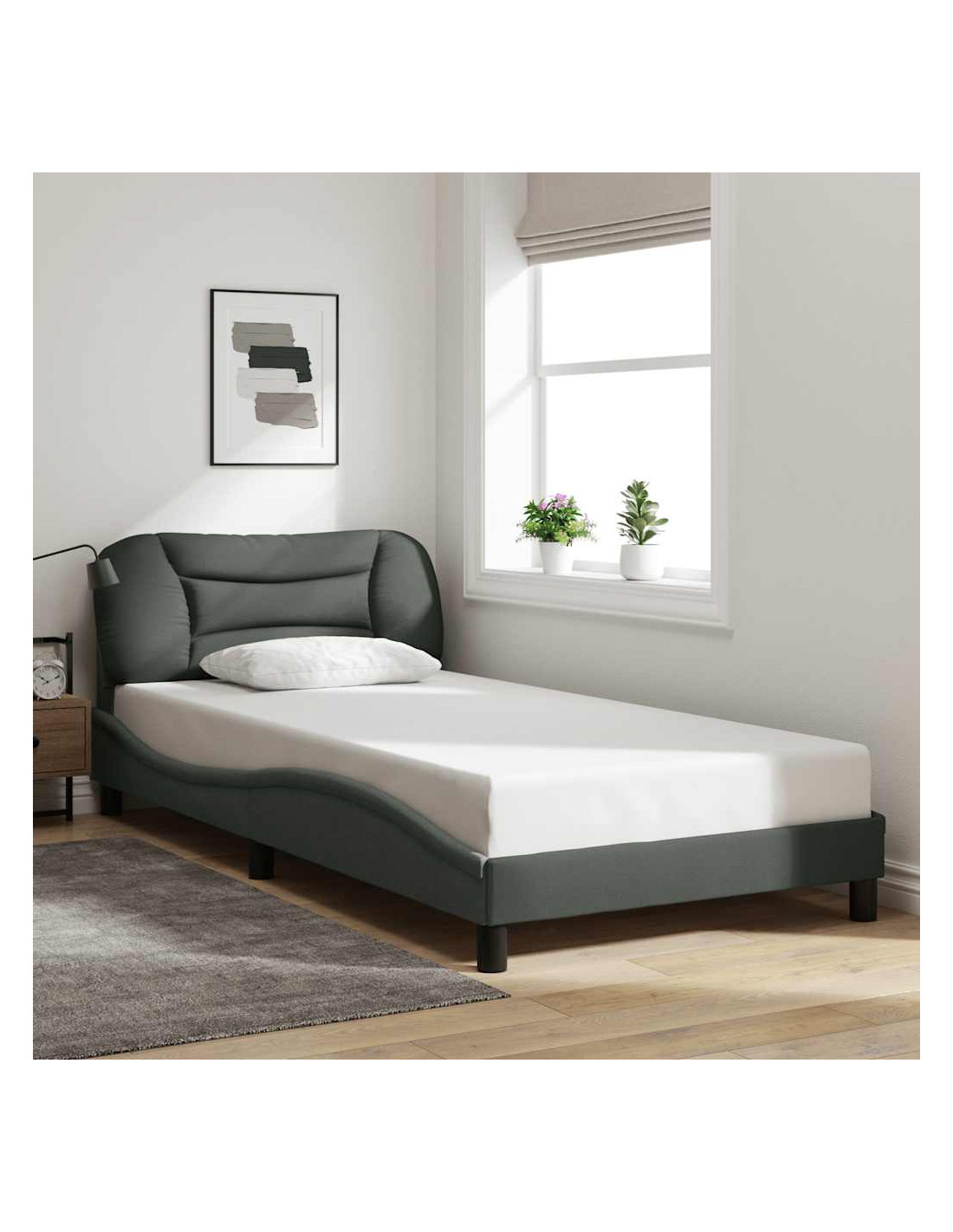 Passa una notte di sonno migliore e riposante con questo giroletto con testiera! È un'accogliente aggiunta a qualsiasi camera da letto. Tessuto a lunga durata: Il tessuto presenta un aspetto semplice e pulito, pur rimanendo traspirante, delicato sulla pelle e resistente.Doghe in compensato: Le doghe in compensato conferiscono una buona distribuzione del peso, garantendo che il materasso rimanga in posizione ad ogni movimento del vostro corpo durante il sonno.Supporto eccellente: Il cuscino testata è imbottito in fibra PP per un comfort molto morbido e ottimale, offrendovi un supporto eccellente per la schiena mentre siete seduti a letto per leggere o guardare la TV.Design pratico: Il cuscino testiera è dotato di una facile installazione, e le chiusure a strappo sul retro possono essere utilizzate per fissare le luci a LED.Design laterale ondulato: L'aspetto ondulato del giroletto è elegante e sofisticato, aggiungendo un tocco moderno e raffinato al vostro arredamento, rendendolo il punto focale della vostra camera da letto. Buono a sapersi:Il materasso non è incluso con questo letto. Offriamo una vasta scelta di materassi. Potete fare riferimento al nostro negozio per trovare un materasso da abbinare.