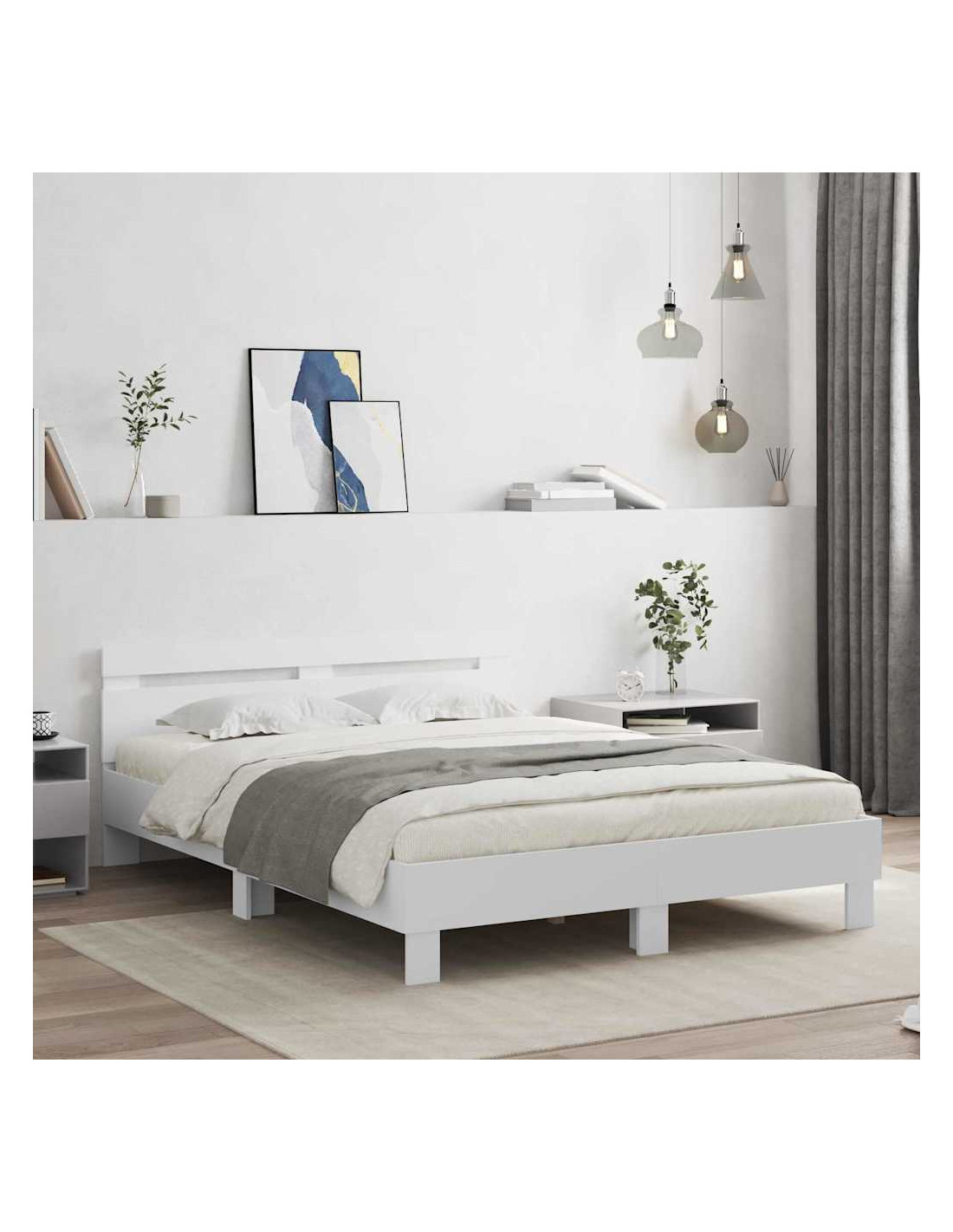 Questa struttura letto moderna con luci LED è pensata per abbellire ogni camera da letto con il suo design semplice e chic. La costruzione in legno ingegnerizzato promette prestazioni robuste per anni. Perfetta per qualsiasi camera da letto, mixa stile e funzionalità, garantendo comfort e comodità a chi cerca un tocco minimalista nel proprio spazio di riposo. Costruzione in legno ingegnerizzato Il letto ha una costruzione solida in legno ingegnerizzato, scelto per la sua resistenza e il suo look elegante. È fatto per resistere all'uso quotidiano, assicurando che rimanga un elemento della casa per anni, mantenendo fascino e integrità. Opzioni di illuminazione LED Grazie alle strisce LED multicolori, offre un'illuminazione ambientale regolabile, migliorando l'atmosfera della stanza. Puoi facilmente controllare le luci tramite un interruttore lungo il cavo, rendendolo un'aggiunta pratica per portare un tocco di tecnologia moderna nella tua vita. Base a doghe fisse Progettata con una base a doghe rigida, questo telaio supporta benissimo diversi tipi di materassi, favorendo il comfort durante il sonno. Il design è pratico e fornisce supporto essenziale a tutta la costruzione. Alimentazione USB Il letto è dotato di una fonte di alimentazione USB, consentendo una perfetta integrazione con i moderni dispositivi digitali, ideale per caricare senza problemi i tuoi dispositivi in camera. Questa opzione aumenta la funzionalità, unendo utilità ed estetica. Facile manutenzione Mantenere il letto in ottime condizioni è semplice grazie alla sua superficie facile da pulire. Basta un panno umido per rimuovere la polvere e mantenere l'aspetto chic, rendendo la pulizia un compito semplice. Questo garantisce longevità e freschezza.