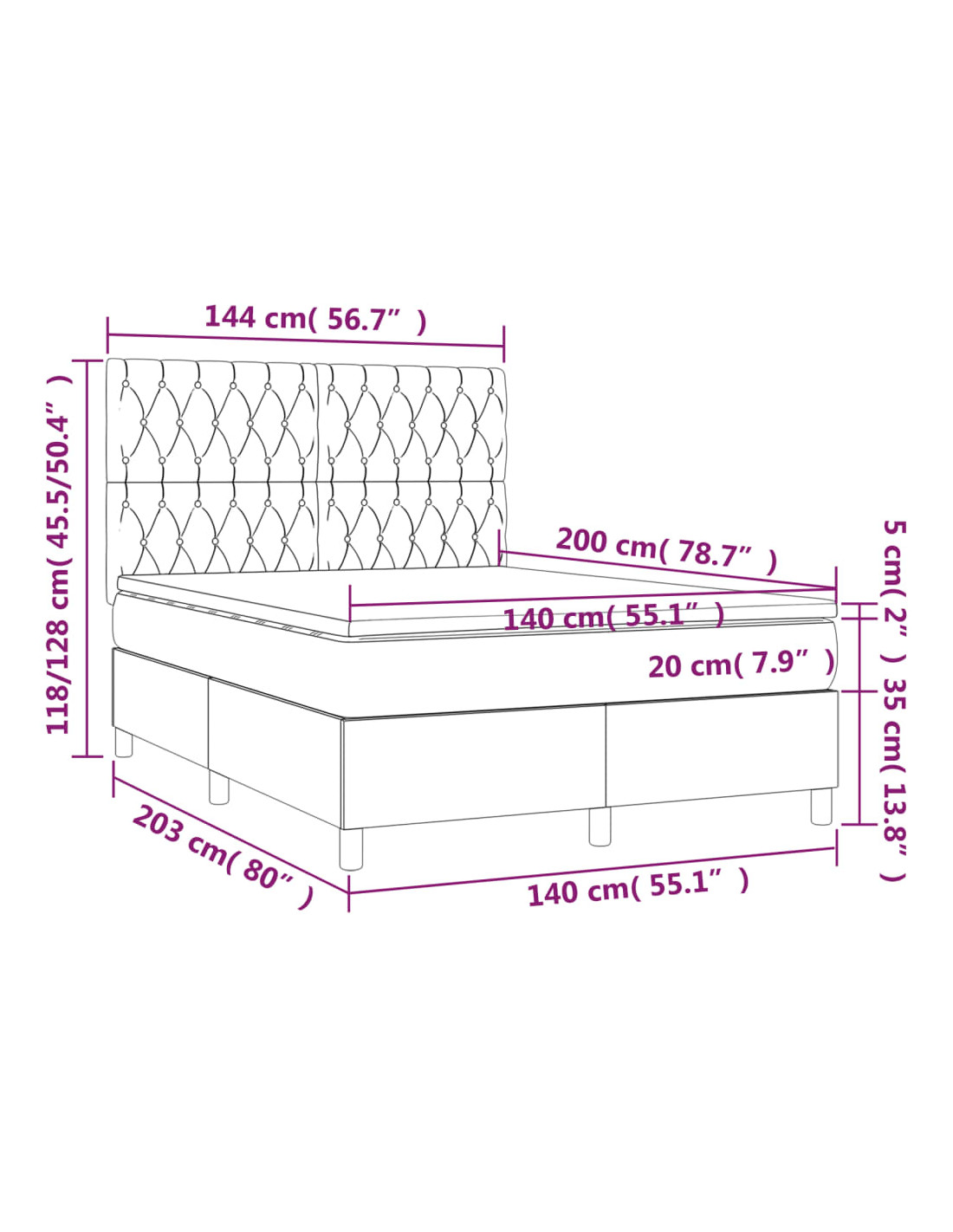 - Dimensioni: 140 x 200 x 20 cm (L x P x A)