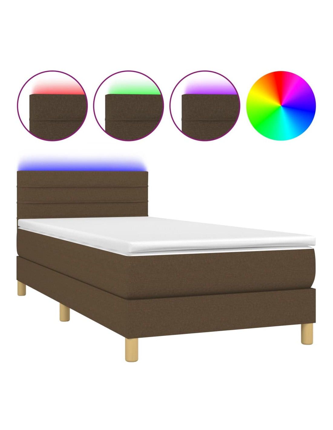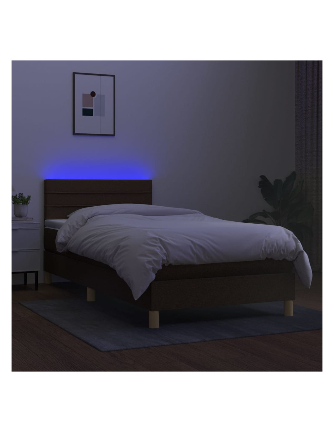 Letto a Molle Materasso e LED Marrone Scuro 90x190cm in Tessuto