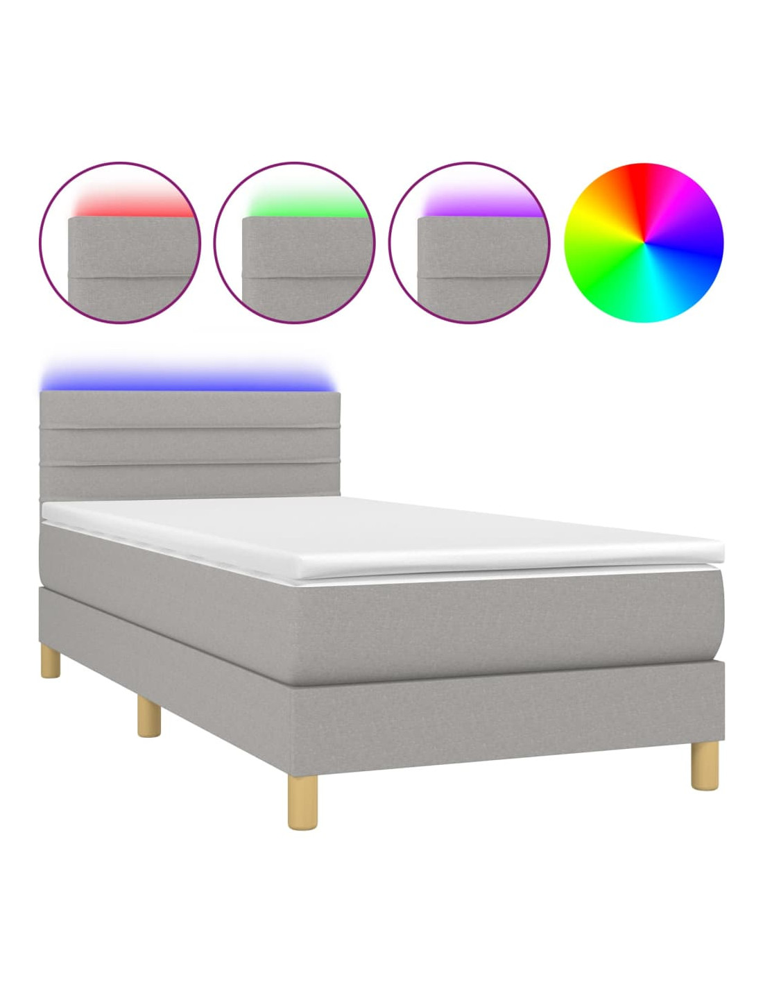 Letto a Molle Materasso e LED Grigio Chiaro 90x190 cm Tessuto