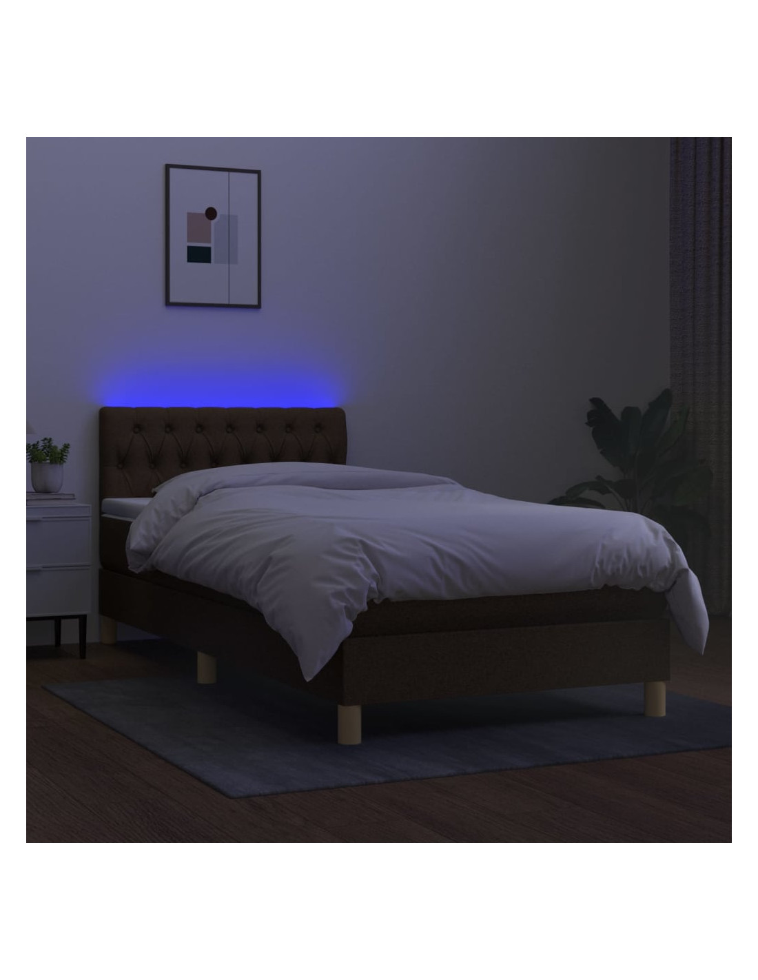 Letto a Molle Materasso e LED Marrone Scuro 90x190cm in Tessuto
