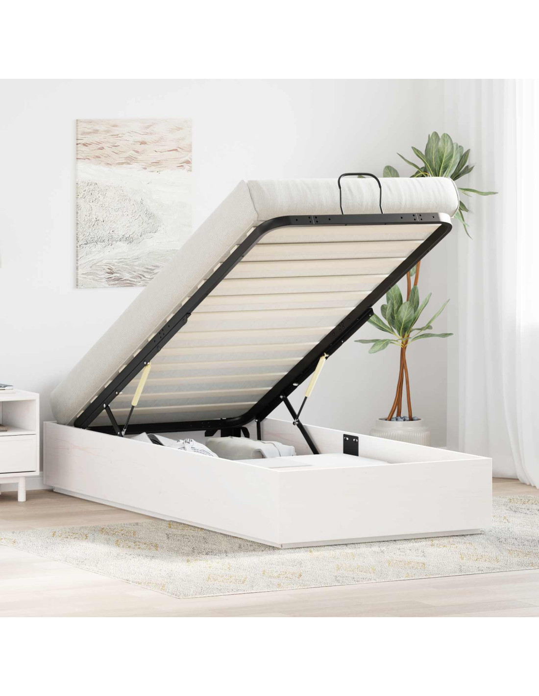 Questo telaio letto ottomano è pensato per arricchire la tua camera grazie al suo design elegante e pratico. Unisce uno stile moderno a una funzionalità straordinaria, così puoi goderti al massimo il tuo spazio senza rinunciare all'estetica. Con il meccanismo di sollevamento idraulico, l'accesso allo spazio di archiviazione è super facile, rendendolo perfetto per chi ama uno spazio ordinato. Le sue linee pulite creano un'atmosfera accogliente e ideale per chi adora il moderno. Legno massello di pino: Fatto con legno massello di pino, questo letto aggiunge un tocco di calore alla tua camera. La solidità del pino garantisce stabilità e supporto per un sonno tranquillo, mentre le venature naturali donano charme ed eleganza al pezzo. Spazio di archiviazione ampio: Sotto il telaio dal design pulito c'è tanto spazio per riporre biancheria e coperte. Perfetto per chi ha bisogno di soluzioni pratiche, senza intaccare l'estetica della stanza. Meccanismo di sollevamento a gas: L'accesso allo spazio di archiviazione è semplicissimo grazie al meccanismo a gas, quindi niente più sforzi. Con un semplice movimento puoi aprire il vano e utilizzare il letto senza problemi, tutto in modo silenzioso. Design moderno: Le linee pulite e il look contemporaneo fanno di questo letto un elemento di forte impatto che si adatta a diversi stili d'arredamento, esaltando l'atmosfera e aggiungendo un tocco di eleganza. Assemblaggio facile: Montare il letto è un gioco da ragazzi: serve solo un cacciavite. Le istruzioni chiare rendono tutto semplice e veloce, permettendoti di goderti il tuo nuovo acquisto senza difficoltà.