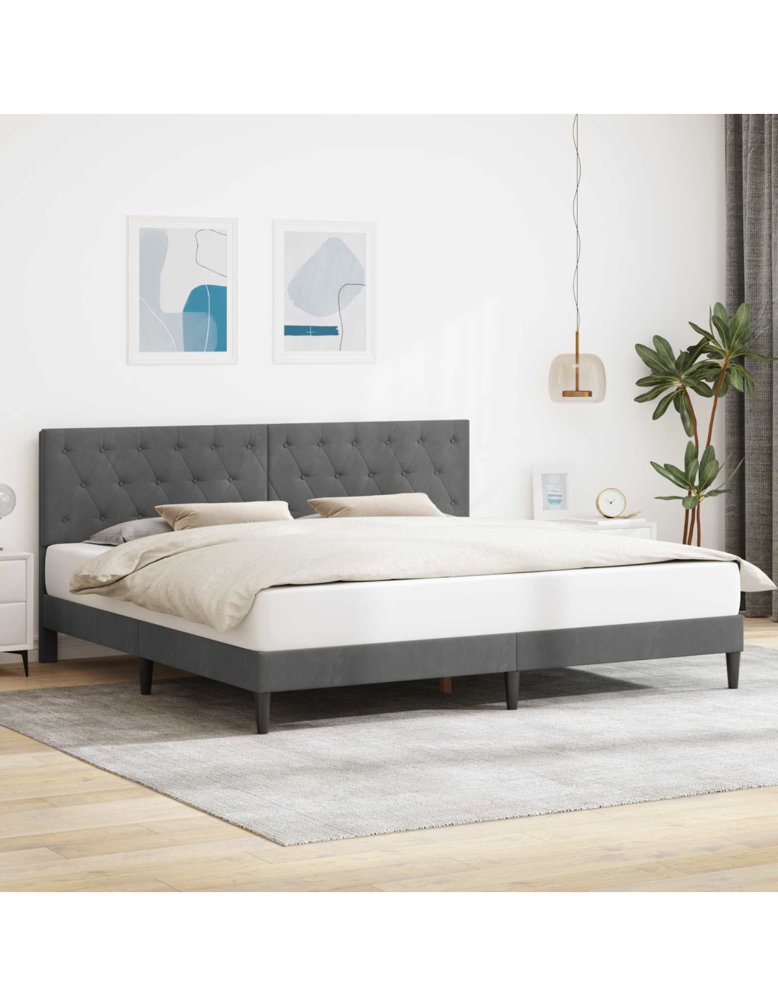 Questa struttura letto moderno di lusso aggiunge un tocco chic a qualsiasi camera con il suo design contemporaneo e le sue funzionalità. Con una forma rettangolare e un look minimalista, si adatta perfettamente a varie decorazioni, offrendo uno sfondo elegante per il relax. Il velluto crea una sensazione morbida e attraente, rendendo lo spazio accogliente e promettendo un rifugio perfetto per le notti. Una fusione di stile e funzionalità per chi cerca sia forma che sostanza. Velluto di Alta Qualità Con un rivestimento in velluto di lusso, questa struttura letto offre una sensazione morbida e resistente alle macchie, che migliora il comfort e l'aspetto della tua stanza. Il velluto è noto per la sua texture ricca, regalando un'atmosfera opulenta. Inoltre, è resistente alle macchie, mantenendo un look sempre ordinato. Struttura Robusta Realizzata in compensato con gambe rastremate, questa struttura letto è un mix di eleganza e stabilità. La testiera moderna in compensato aggiunge un tocco attuale, mentre la struttura è progettata per durare. Promette supporto affidabile per un sonno sereno e lunga durata. Base a Doghe Fisse Dotato di una base a doghe fisse, il letto ha doghe dure che migliorano il supporto del materasso. Questo design garantisce che il materasso duri più a lungo e offre comfort superiore per chi dorme. Versatilità per la Camera da Letto Questa struttura è versatile e si adatta a qualsiasi camera da letto, ideale per stili minimalisti e moderni. Il suo design semplice si integra bene in vari ambienti, da appartamenti a suite di lusso. Minimal Manutenzione È facilissimo prendersi cura di questa struttura letto: basta pulirla con un panno umido per tenerla sempre in ordine. Mantenere il letto pulito è molto semplice, per una tranquillità duratura.