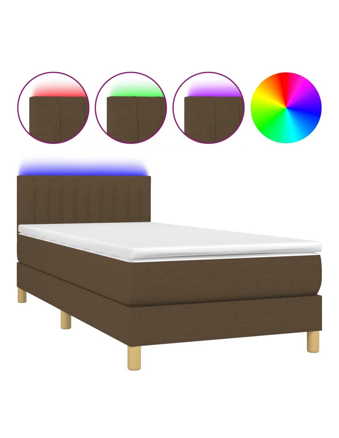 Letto a Molle Materasso e LED Marrone Scuro 90x190cm in Tessuto