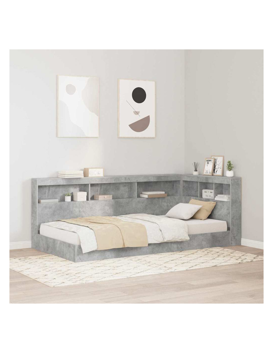 Il Letto Libreria Minimalista mescola perfettamente utilità e uno stile minimalista moderno. Le sue linee pulite e il design intelligente creano un'atmosfera rilassata in qualsiasi camera, ideale per chi ama tenere tutto in ordine. La libreria nella testiera è un trucco geniale per lo stoccaggio, che lo rende perfetto per stanze piccole come camere accoglienti o stanze per gli ospiti. Svegliati in un ambiente tranquillo che sembra in ordine grazie alla sua eleganza semplice e allo stoccaggio efficiente. Se sei un amante dei libri o semplicemente apprezzi un buon design, questo letto ha tanto spazio per riporre le tue cose e rende la tua stanza bellissima. Materiale in Legno Ingegnerizzato: Realizzato in legno ingegnerizzato di alta qualità, questo letto è robusto e costruito per durare. Il legno ingegnerizzato ha una consistenza uniforme ed è resistente alla deformazione, quindi durerà a lungo. La finitura liscia sembra lucida, perfetta per interni minimalisti. Testiera con Libreria Integrata: Il letto ha una testiera pratica con libreria per avere più spazio di stoccaggio, sia per libri che per oggetti personali. Ottimo per spazi ristretti, riduce la necessità di altri mobili, tenendo tutto in ordine. Raggiungi facilmente quello che ti serve per la notte, rendendo la tua vita più organizzata. Costruzione Durevole: Costruito con materiali resistenti, questo letto è fatto per durare. La connessione tra la testiera e il telaio lo rende stabile e in grado di sostenere tanto peso senza oscillare. La solida costruzione ti dà tranquillità mentre lo usi. Design Salva-Spazio: Questo letto a forma di L si inserisce perfettamente negli angoli, sfruttando al massimo lo spazio nella tua camera. È ideale per chi cerca di liberare spazio senza rinunciare a stile e funzionalità, soprattutto in stanze più piccole. Manutenzione Semplice: Tenere il letto in buone condizioni è facile; basta pulirlo con un panno umido. Realizzato con materiali che non richiedono molte attenzioni, resta bello con pochissima cura, permettendoti di goderti il tuo spazio senza pensieri.