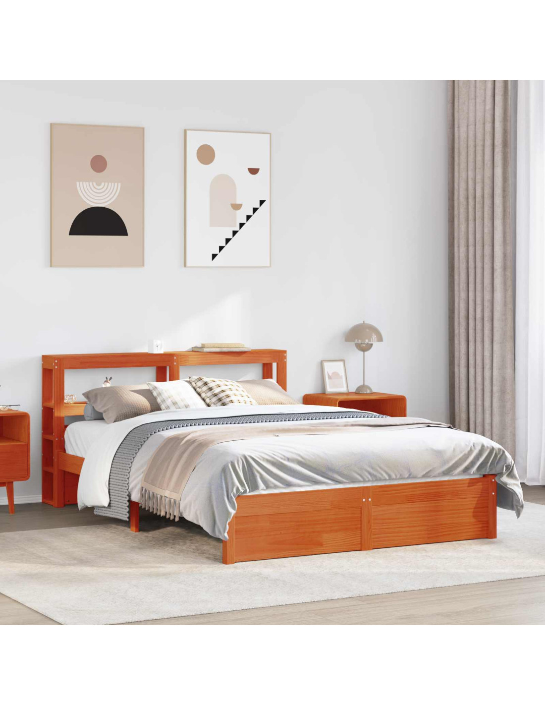 Questo telaio del letto in legno rettangolare ha linee moderne e pulite, con il calore del legno massello di pino. La finitura marrone cerato si sposa bene con tanti stili, creando un centro accogliente nella tua camera. Questo mobile crea un'atmosfera di relax, perfetta per serate invernali o freschi mattini primaverili. Legno massello di pino: Costruito in legno massello di pino, questo letto è robusto, promette durabilità e mette in risalto la sua bella finitura marrone. La texture del legno rende il letto interessante, offrendoti un supporto solido e attraente. Rete a doghe piattaforma: Con la base a doghe a distanza ravvicinata, questo letto supporta bene ogni tipo di materasso e facilita la ventilazione, cosa che aiuta a far durare di più il materasso. Il suo design semplice è facile da gestire e ti garantisce comfort e serenità. Ripiani integrati: La testata è dotata di ripiani in legno massello di pino, ideali per conservare libri, sveglie o decorazioni, mantenendo tutto in ordine e a portata di mano. Stile moderno: Con linee pulite e poca decorazione, questo letto si integra perfettamente in ambienti contemporanei. Perfetto per chi vuole rendere la propria camera un luogo tranquillo e funzionale. Istruzioni per la cura: Per mantenerlo in buone condizioni, puliscilo regolarmente con un panno asciutto per far risaltare la sua naturale bellezza. Così facendo, assicuri anche un ambiente di sonno sano.