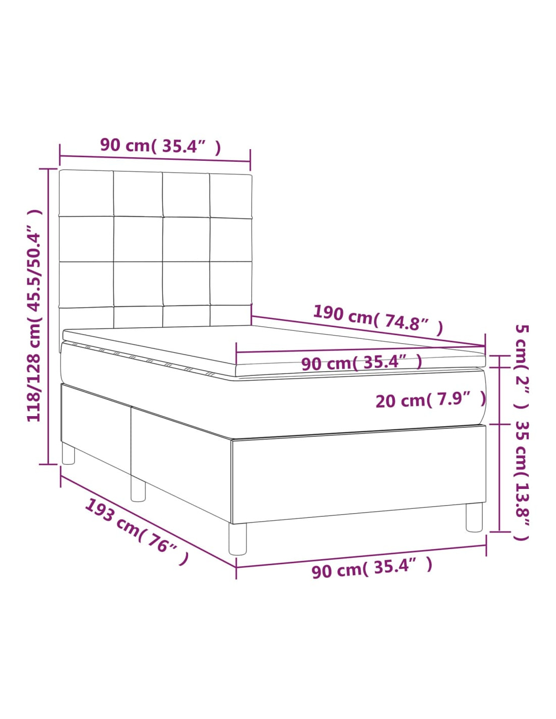 - Dimensioni: 90 x 190 x 20 cm (L x P x A)