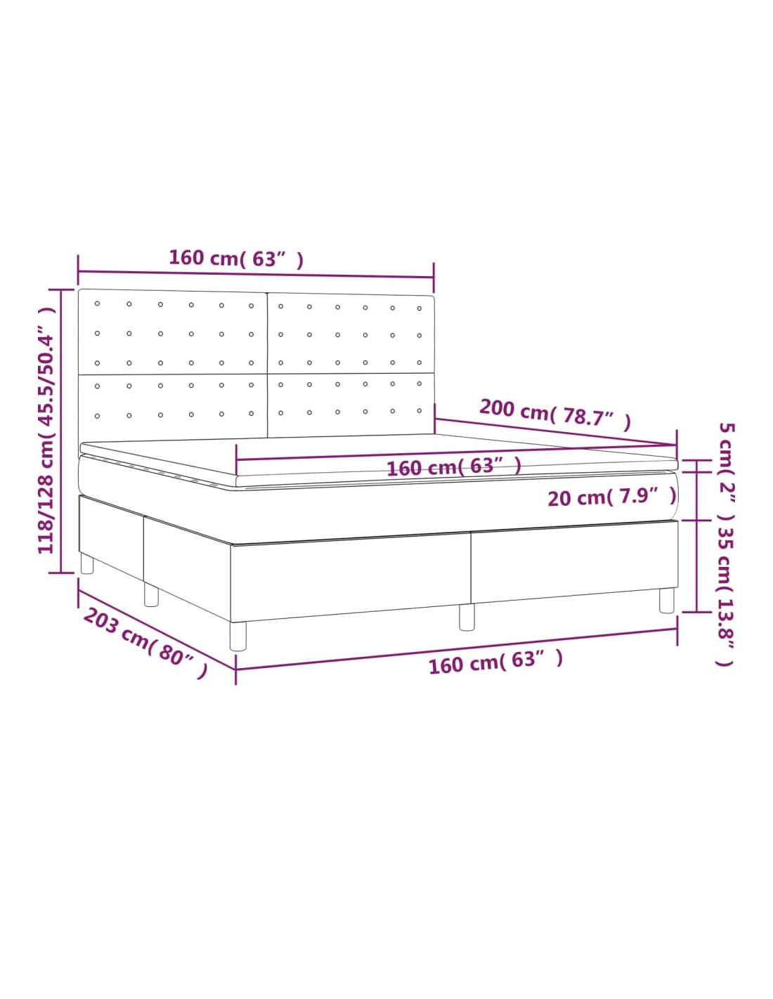 - Dimensioni: 203 x 160 x 118/128 cm (L x P x A)