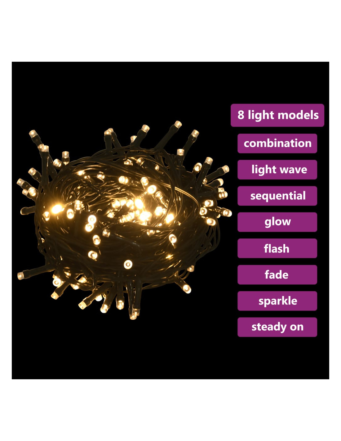 - Lunghezza della stringa di luce a LED: 15 m