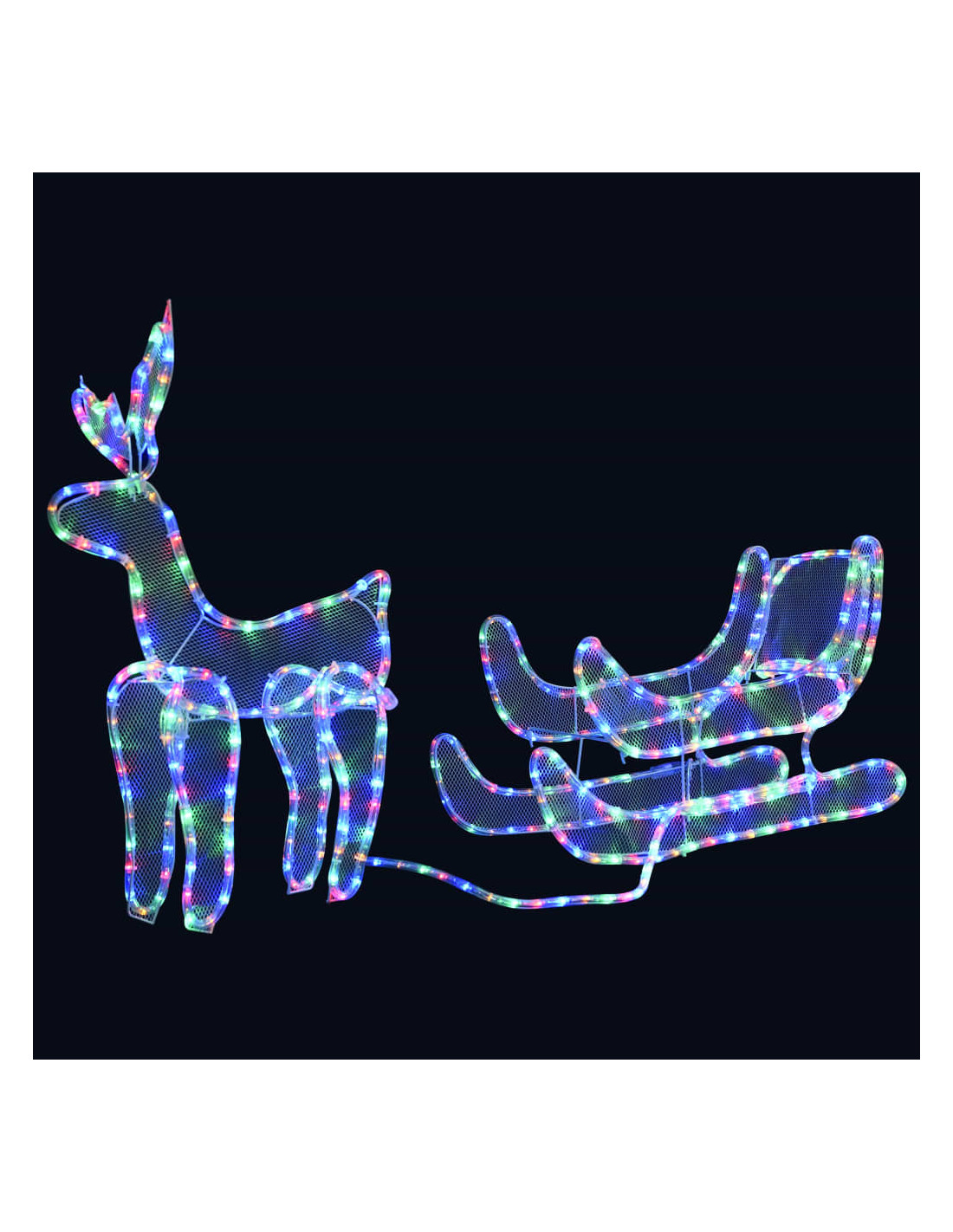 Questa accattivante decorazione luminosa con luci natalizie a forma di renna e slitta, con LED e rete, è una decorazione perfetta.