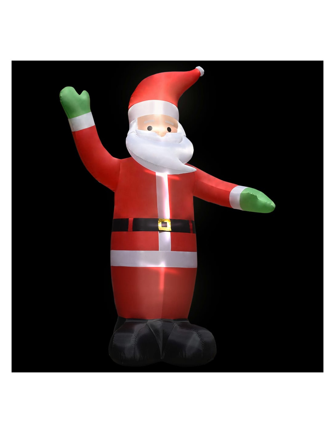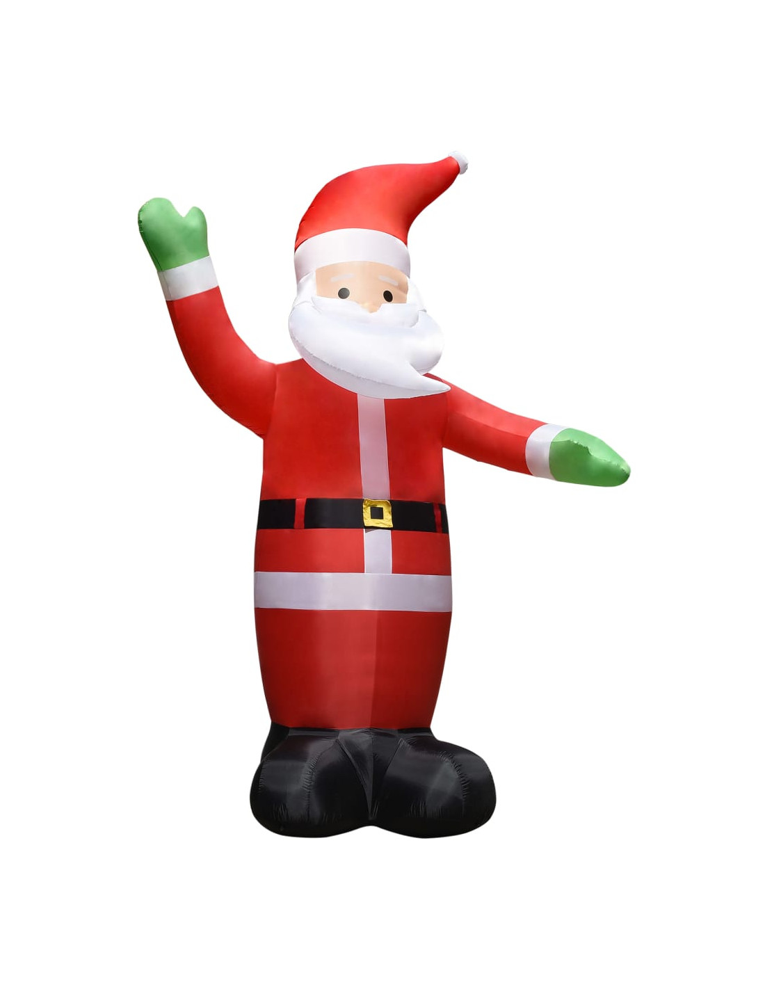 Realizzato in tessuto di poliestere, questo Babbo Natale è leggero e resistente alle intemperie. L'installazione è semplice e veloce: basta collegarlo con l'adattatore incluso e si gonfierà in pochi minuti. I picchetti da terra e la corda sono inclusi per maggiore stabilità. Quando non è in uso, potete sgonfiarlo per riporlo facilmente. Inoltre, le luci a LED interne creano un display notturno luminoso. È una decorazione perfetta per la vostra porta d'ingresso o il cortile.
