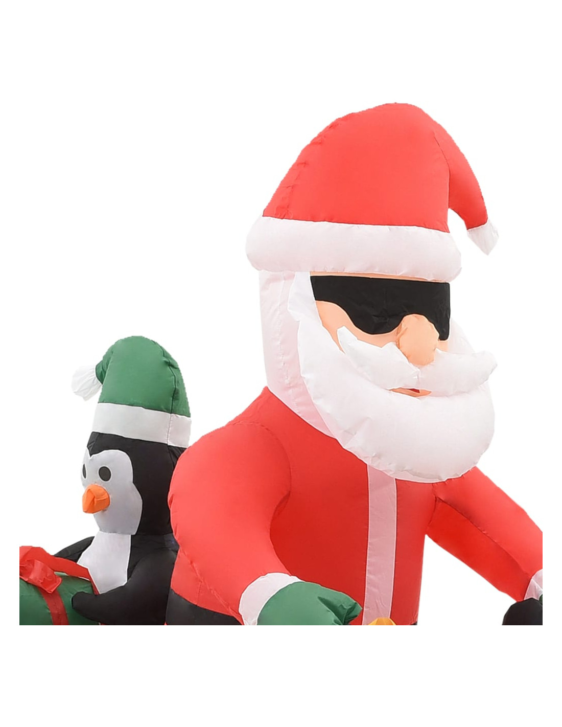 Questa decorazione con luci raffigura la scena di Babbo Natale alla guida di una moto con un pinguino. Realizzata in tessuto, questa decorazione per le vacanze è leggera, resistente agli agenti atmosferici, impermeabile e durevole. Il Babbo Natale gonfiabile può gonfiarsi da solo in pochi secondi, il che è conveniente. C'è 1 soffiatore integrato con il Babbo Natale gonfiabile per mantenere l'aria nel prodotto. Questa decorazione è anche facile da riporre per le prossime festività natalizie dopo lo sgonfiaggio. Dotato di 3 LED per emettere una luce intensa, questo Babbo Natale è molto efficiente dal punto di vista energetico. I picchetti e le corde sono inclusi nella consegna per fissare il nostro prodotto.