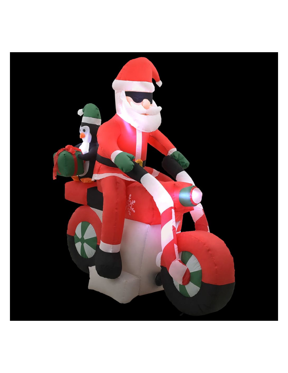 Create la migliore esposizione natalizia festiva nel vostro giardino durante le festività natalizie con il nostro Babbo Natale gonfiabile lungo 150 cm su una motocicletta.