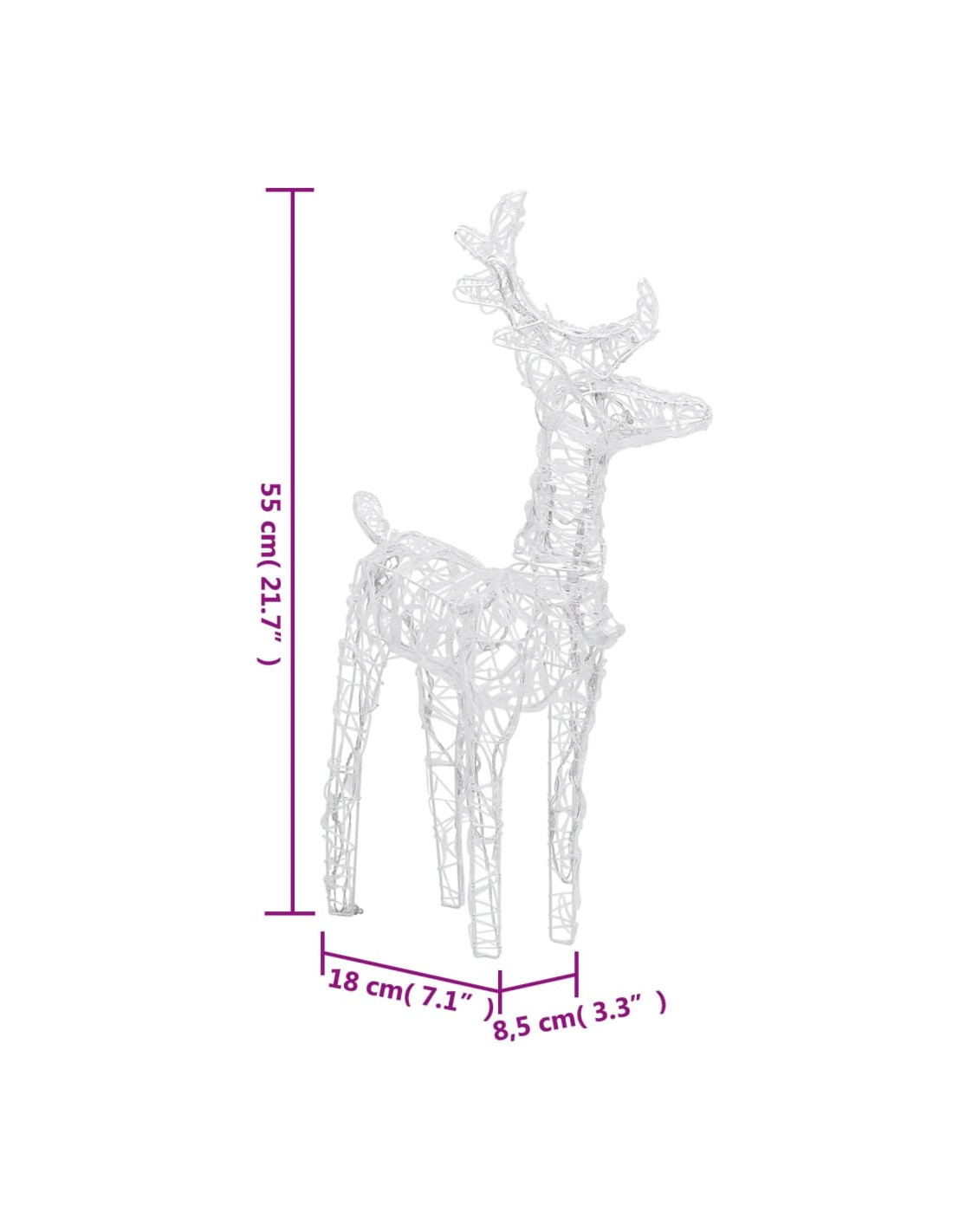 - Dimensioni di ciascuna renna: 18 x 8,5 x 55 cm (L x P x A)