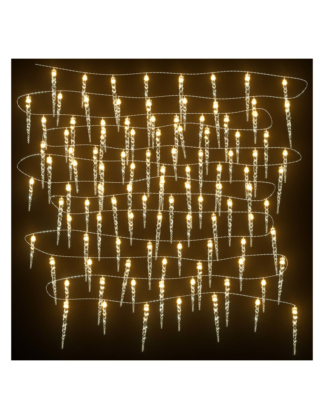 - 100 Luci LED a forma di ghiacciolo: Questa stringa luminosa è dotata di 100 ghiaccioli LED a risparmio energetico che creeranno un magico spettacolo di luci!