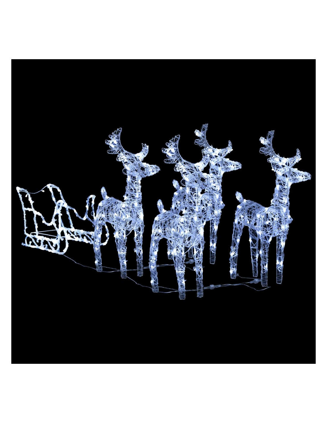 Decorate il vostro giardino o la casa con questa collezione unica. Questa decorazione natalizia con 4 renne e slitta abbinata a una fredda luce bianca fa risaltare la vera bellezza della stagione!