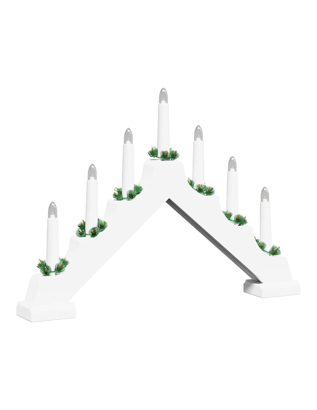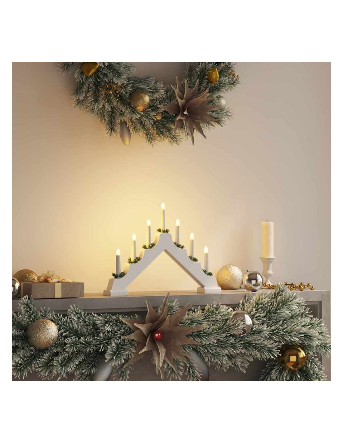 Il ponte con 7 candele LED è un pezzo ben fatto che porta eleganza e fascino festivo alla tua decorazione. Perfetto per il soggiorno o la sala da pranzo, le sue luci LED calde creano un'atmosfera accogliente e rilassante, catturando lo spirito delle festività. Il suo design tradizionale si abbina bene a mobili più elaborati, rendendolo un'aggiunta elegante in qualsiasi ambiente festivo. Il legno di pino classico e la sua delicata illuminazione lo rendono un centro piacevole per le riunioni natalizie.