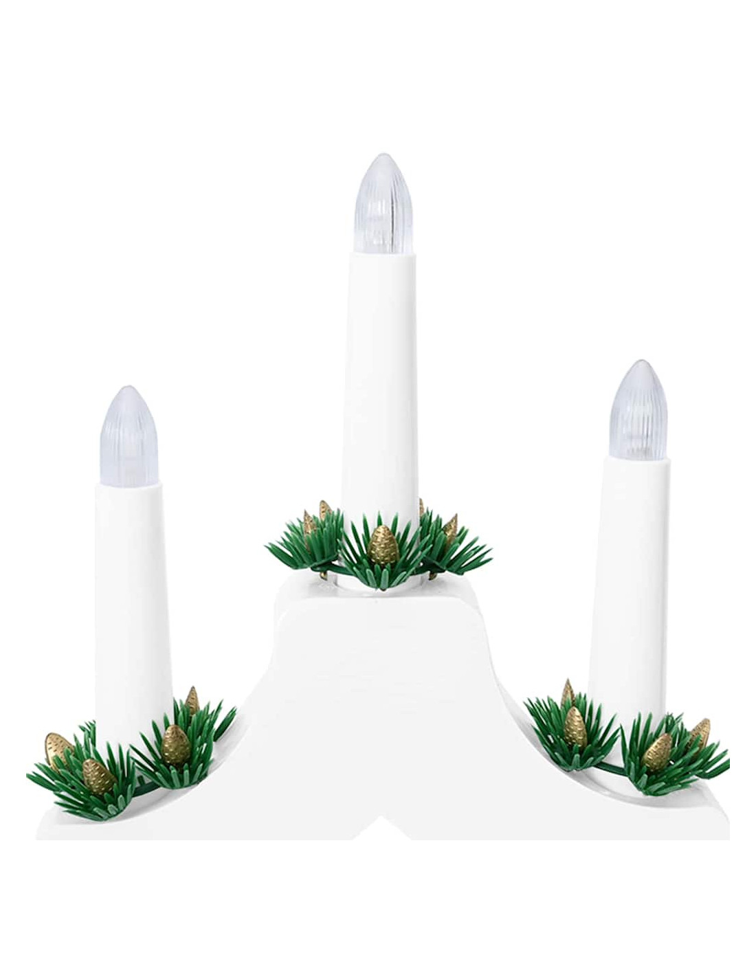 - Componenti Inclusi: Viene fornito con sette candele LED, ognuna racchiusa in un elegante arco di legno di pino e alimentato a batterie. Le luci LED sono un'alternativa efficiente dal punto di vista energetico rispetto all'illuminazione tradizionale, emettendo una luce calda e accogliente. Con un interruttore alternato, è facile da usare, portando comodità sia nella preparazione che nell’utilizzo.