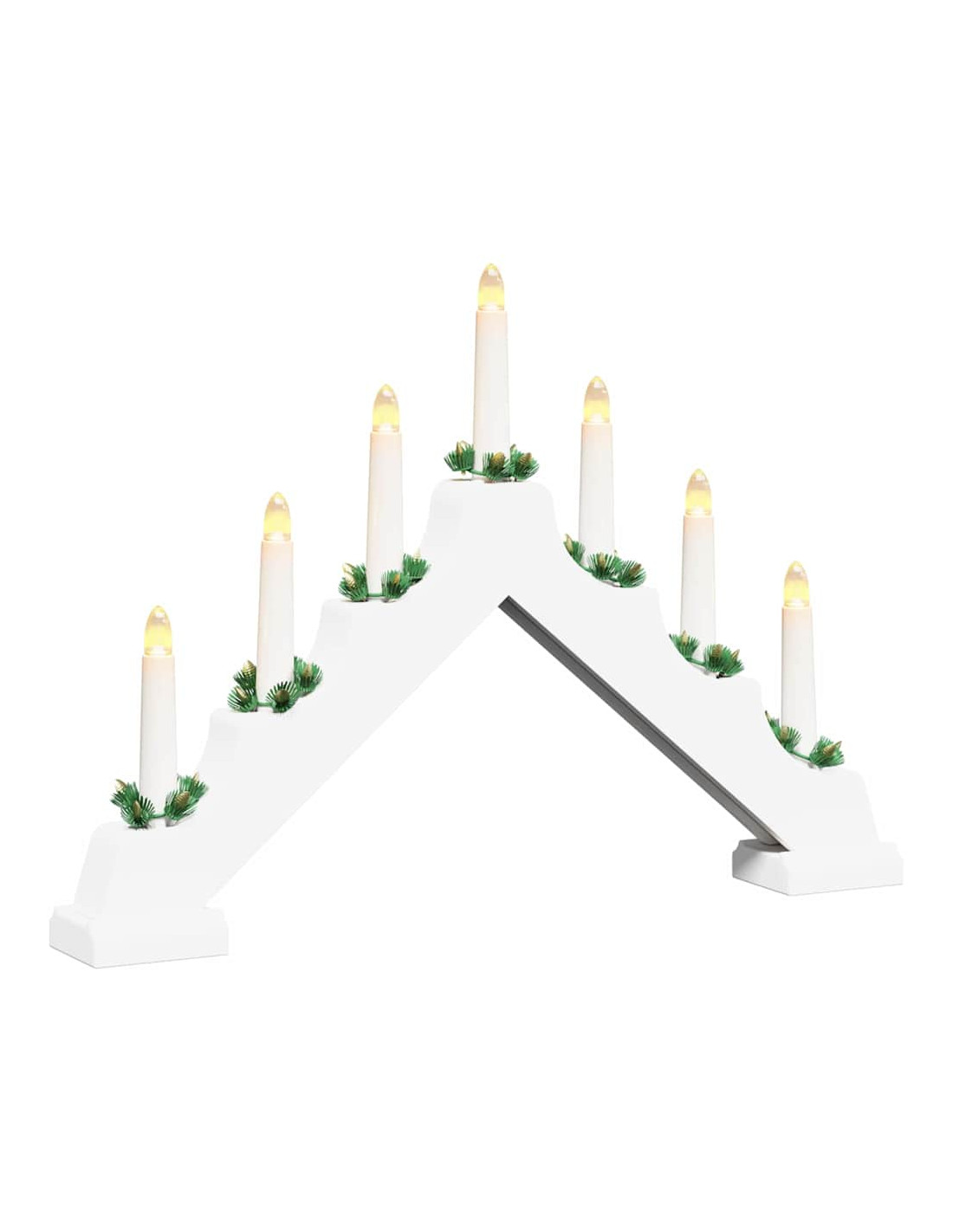 Il ponte con 7 candele LED è un pezzo ben fatto che porta eleganza e fascino festivo alla tua decorazione. Perfetto per il soggiorno o la sala da pranzo, le sue luci LED calde creano un'atmosfera accogliente e rilassante, catturando lo spirito delle festività. Il suo design tradizionale si abbina bene a mobili più elaborati, rendendolo un'aggiunta elegante in qualsiasi ambiente festivo. Il legno di pino classico e la sua delicata illuminazione lo rendono un centro piacevole per le riunioni natalizie.