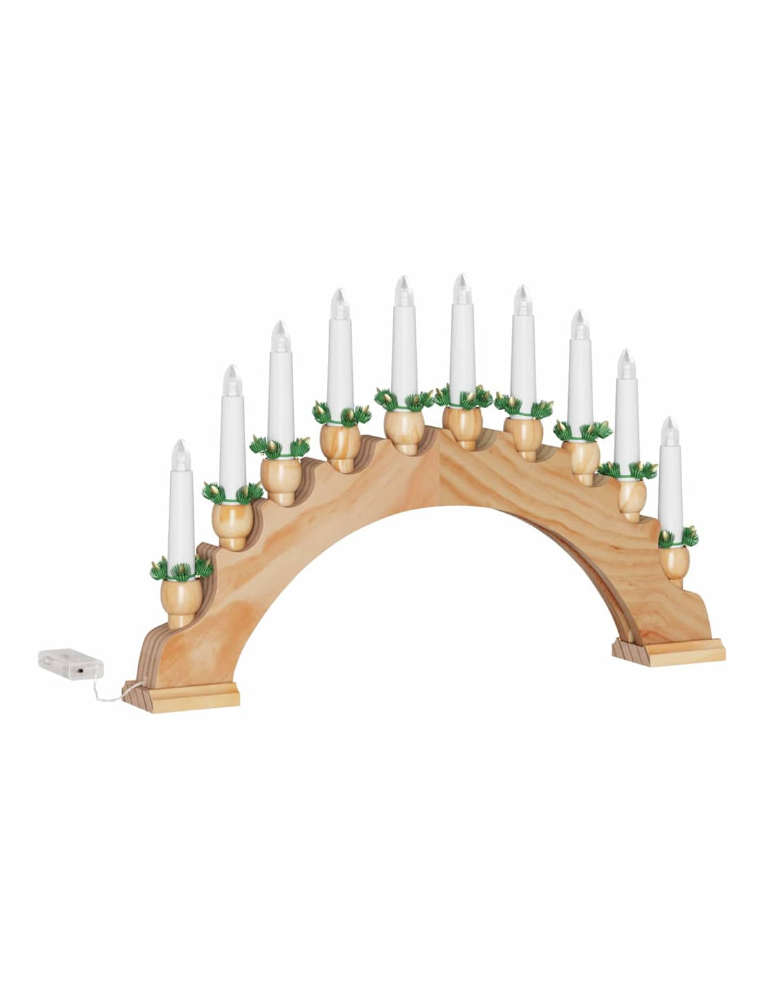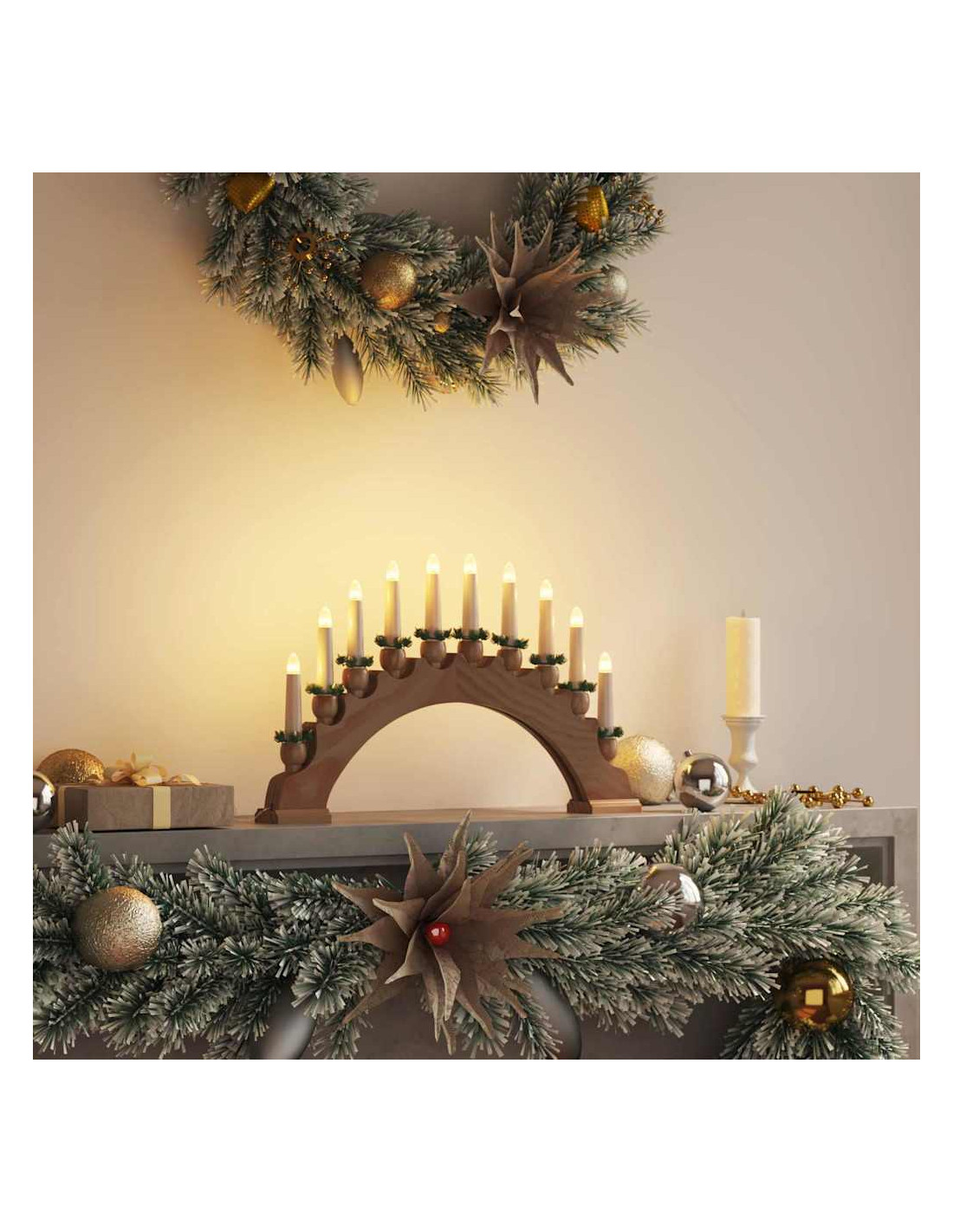 L'Arco di Candele di Natale con 10 Candele LED è una combinazione di tradizione e modernità per una decorazione festiva davvero bella. Fatto in legno massello di pino, questo pezzo porta calore ovunque si trovi. Si posiziona bene su mensole e davanzali, illuminando la stanza con una luce bianca calda e creando un'atmosfera accogliente per riunioni familiari e celebrazioni. Questo accessorio non solo aggiunge fascino alla tua decorazione festiva, ma porta anche un tocco di nostalgia, richiamando le tradizioni delle decorazioni natalizie classiche.