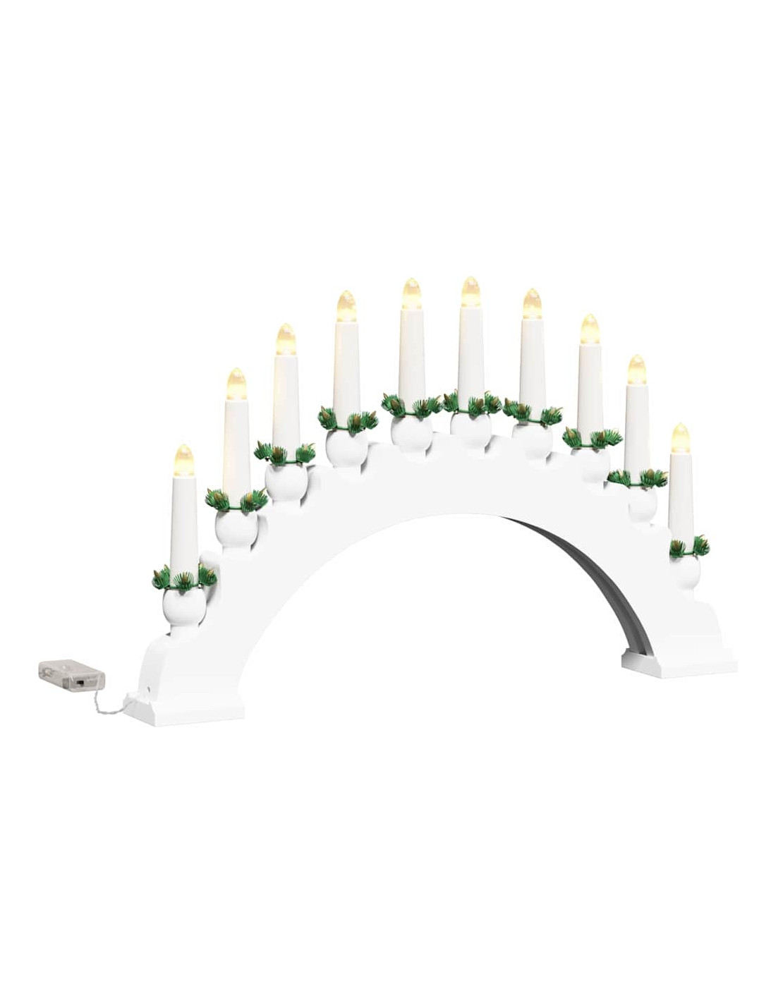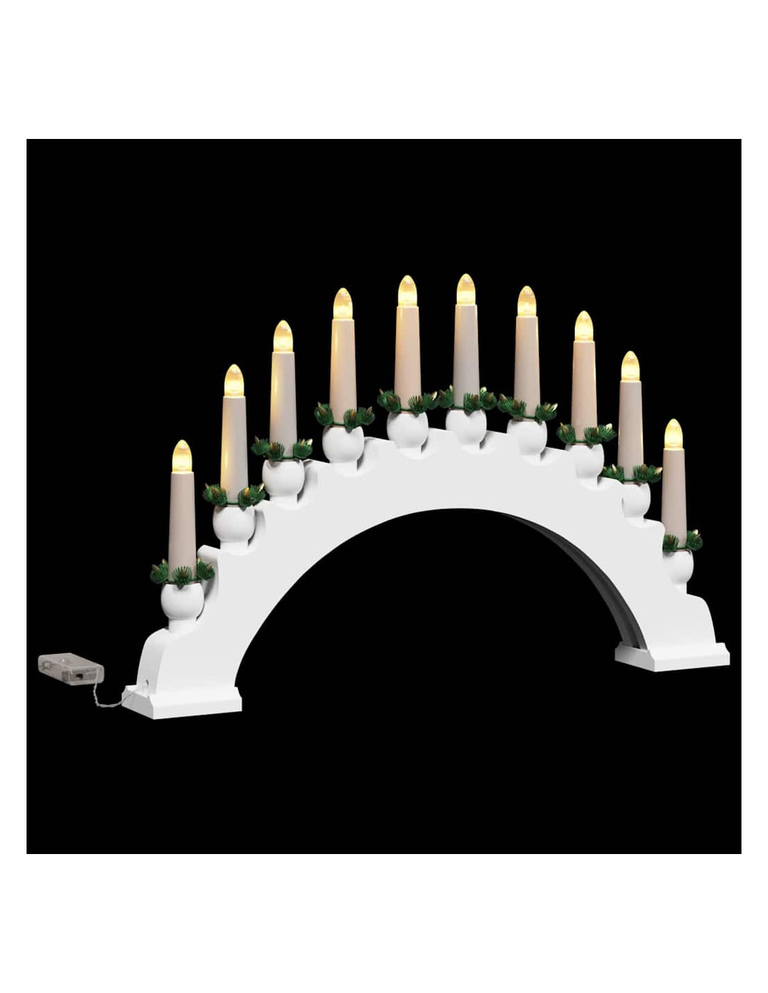 - Illuminazione a LED Calda: Con 10 candele LED, l'arco emette una luce calda bianca, perfetta per un'atmosfera accogliente. La tecnologia LED è sicura e risparmiosa, perfetta per un uso prolungato durante le festività. Goditi il calore che trasforma il tuo spazio in un rifugio festivo.