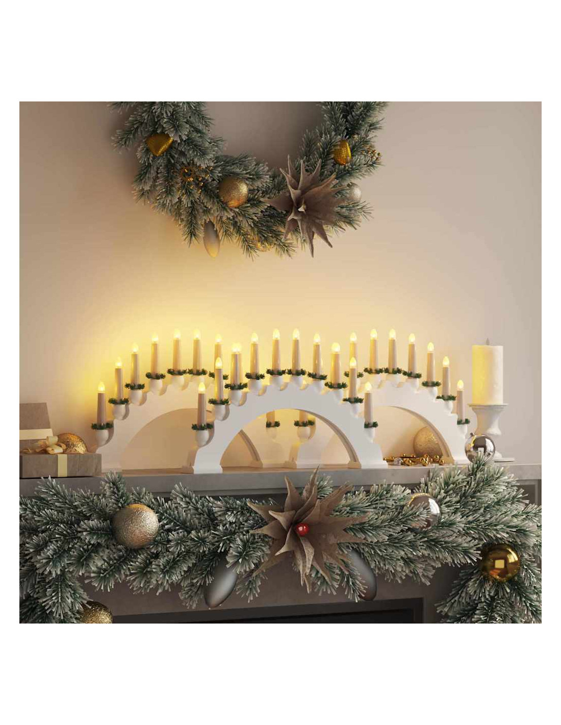 L'Arco di Candele di Natale con 10 Candele LED è una combinazione di tradizione e modernità per una decorazione festiva davvero bella. Fatto in legno massello di pino, questo pezzo porta calore ovunque si trovi. Si posiziona bene su mensole e davanzali, illuminando la stanza con una luce bianca calda e creando un'atmosfera accogliente per riunioni familiari e celebrazioni. Questo accessorio non solo aggiunge fascino alla tua decorazione festiva, ma porta anche un tocco di nostalgia, richiamando le tradizioni delle decorazioni natalizie classiche.