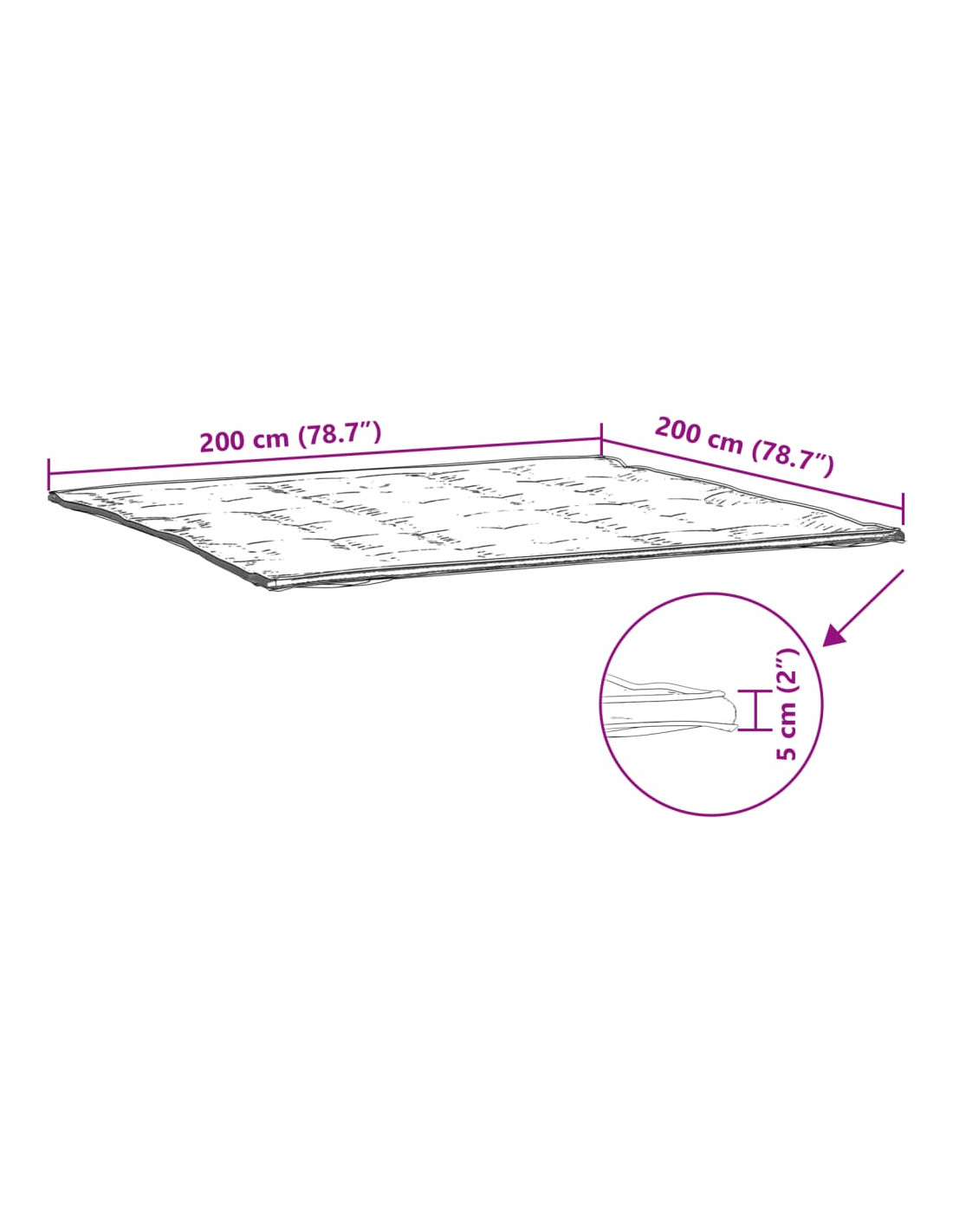 - Dimensioni: 200 x 200 x 5 cm (L x L x S)