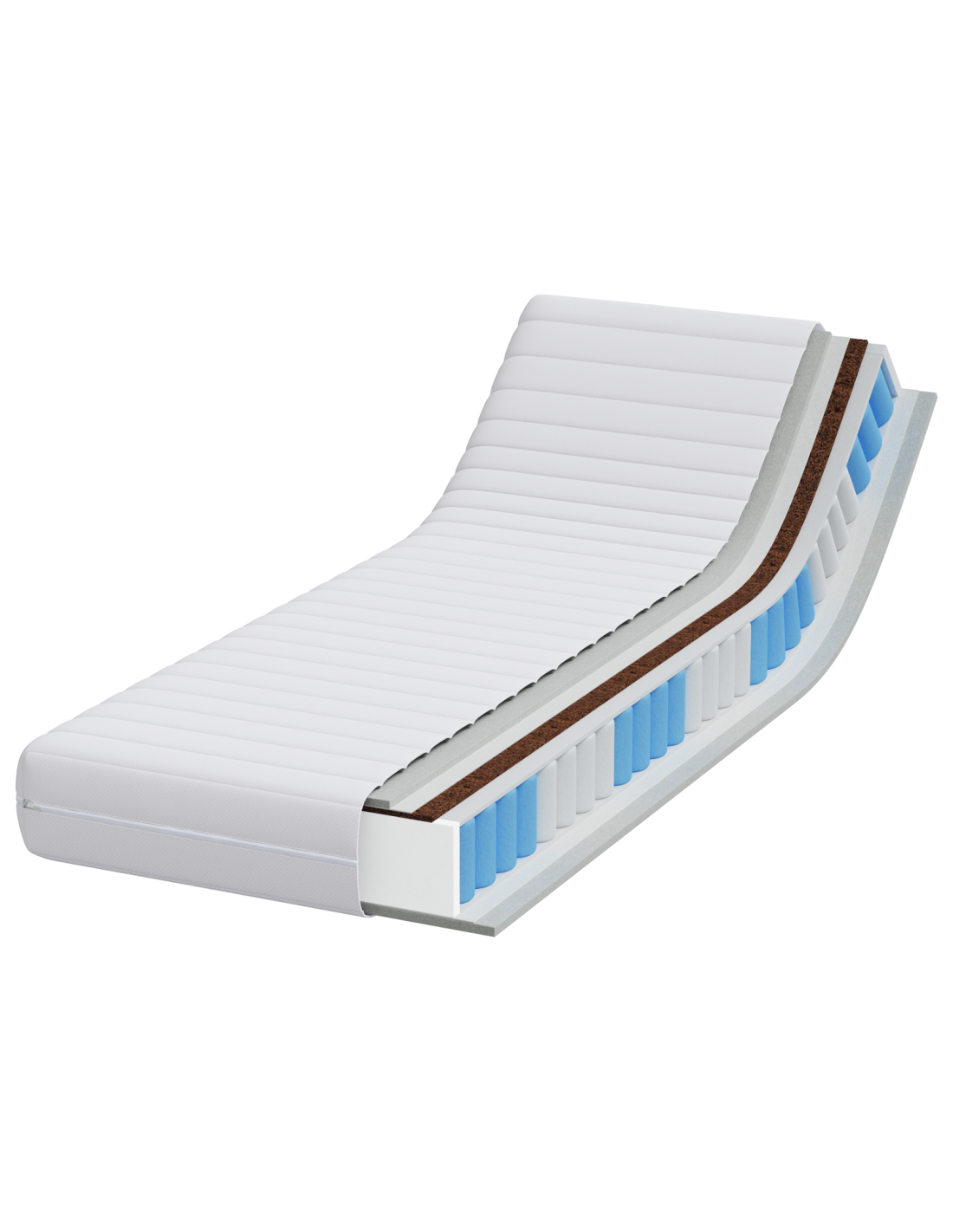 - Integrazione di Strato di Cocco: Questo strato naturale aggiunge fermezza e supporto, essenziale per mantenere una corretta postura spinale durante il sonno. Migliora anche la durabilità del materasso e crea una superficie bilanciata.