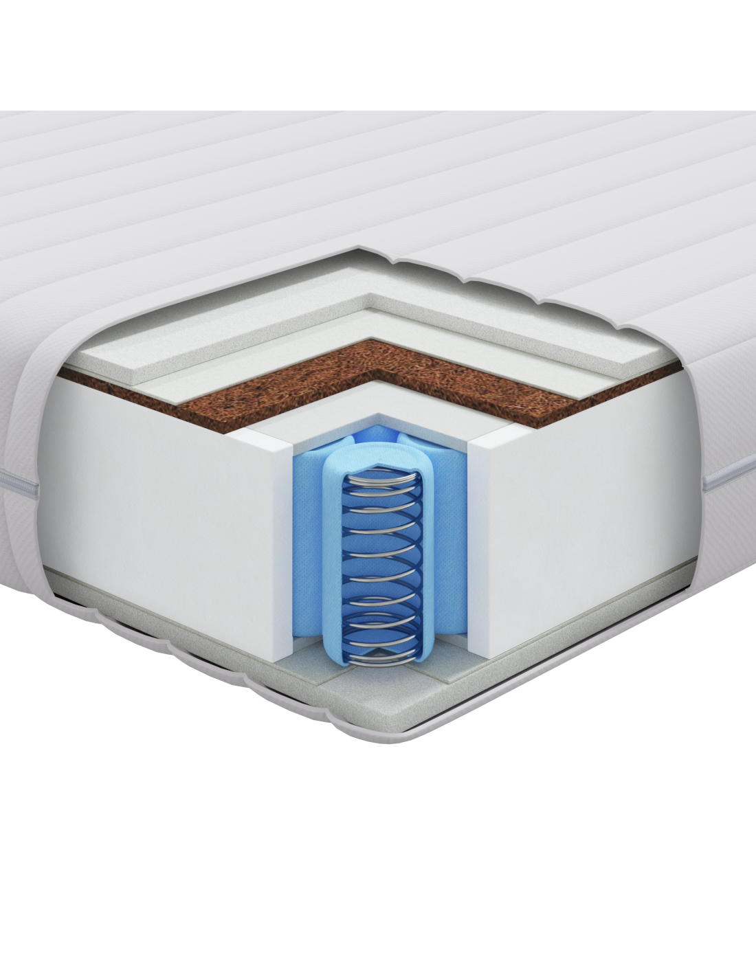 - Integrazione di Strato di Cocco: Questo strato naturale aggiunge fermezza e supporto, essenziale per mantenere una corretta postura spinale durante il sonno. Migliora anche la durabilità del materasso e crea una superficie bilanciata.
