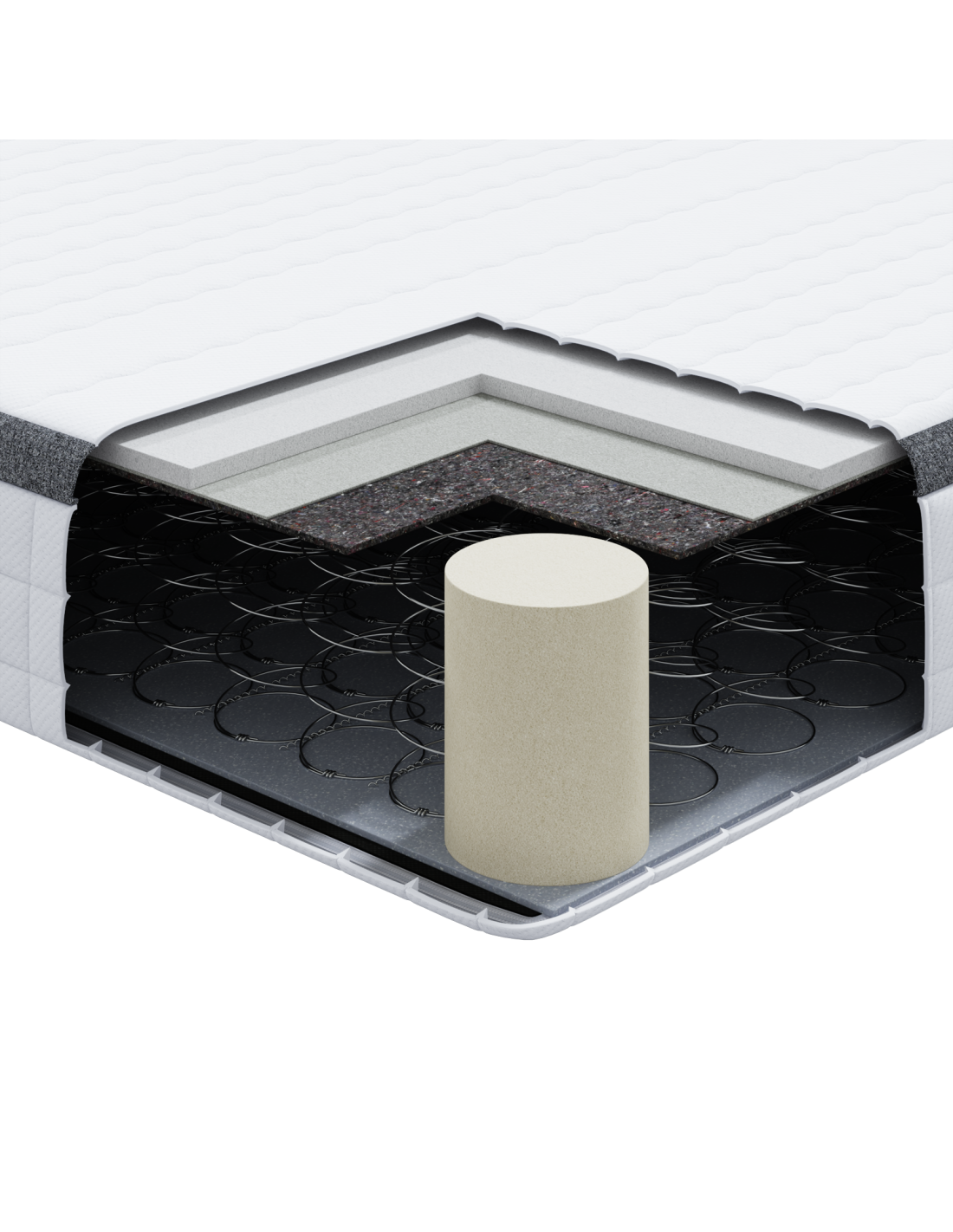 - Materiale a molle Bonnell Questo materasso è fatto con molle Bonnell resistenti, note per il loro supporto tradizionale, offrendo una sensazione ferma e rimbalzante. Le molle durano nel tempo, mantenendo la struttura e garantendo comfort costante. È adatto per diversi tipi di corpo, unendo durata e flessibilità secondo le necessità di chi dorme.