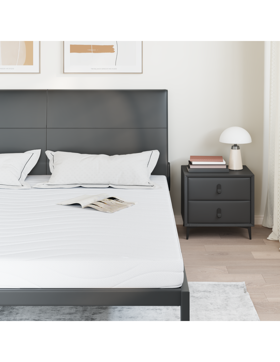 - Funzionalità / Design: Con il suo design contemporaneo e slanciato, questo materasso è perfetto per vari stili di arredamento. È compatto e trasforma ogni angolo in un'oasi di comfort grazie alla sua estetica leggera.